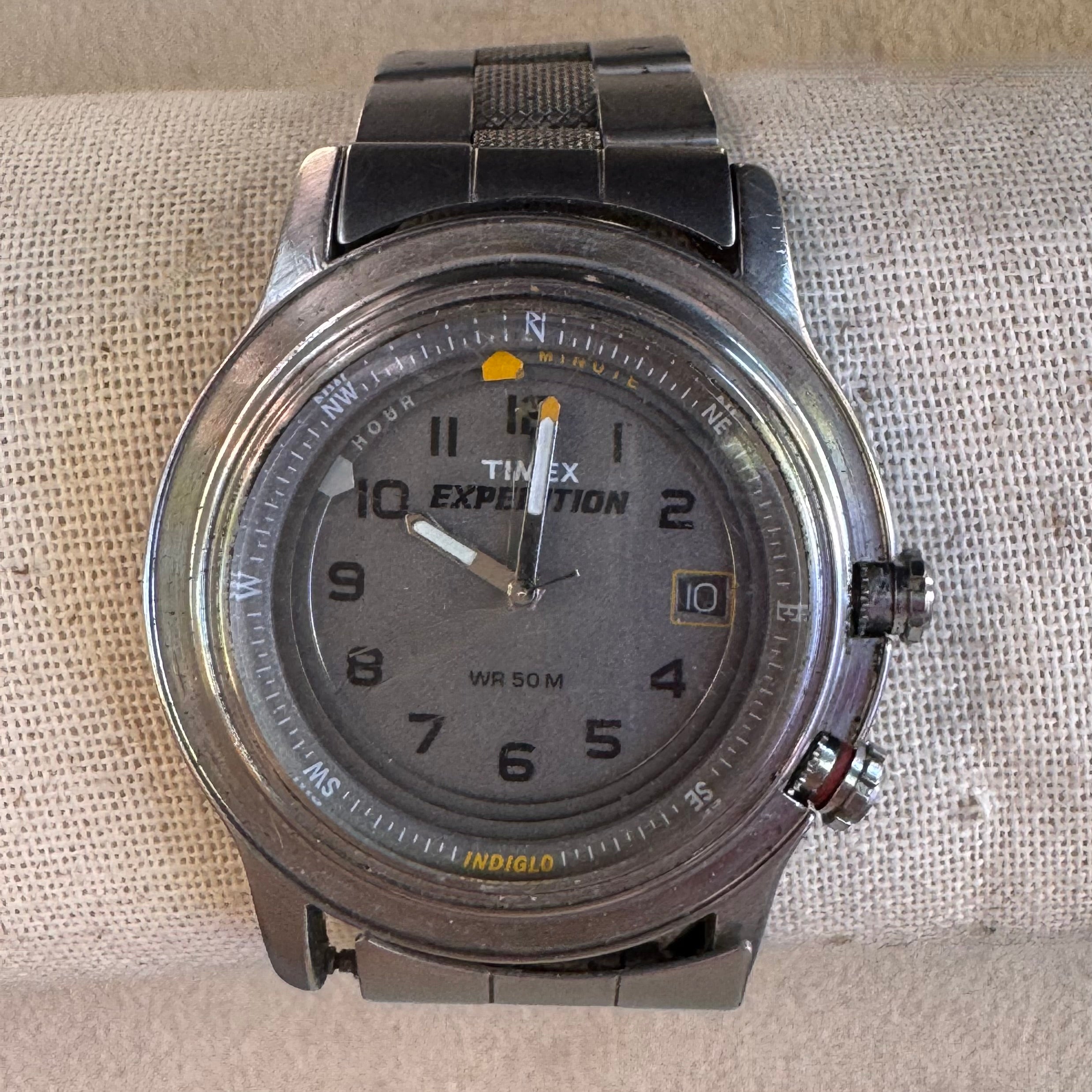 Vintage Timex Expedition WR 50M Men’s Watch – Black Stainless Steel Bracelet, Indiglo, Date Display
