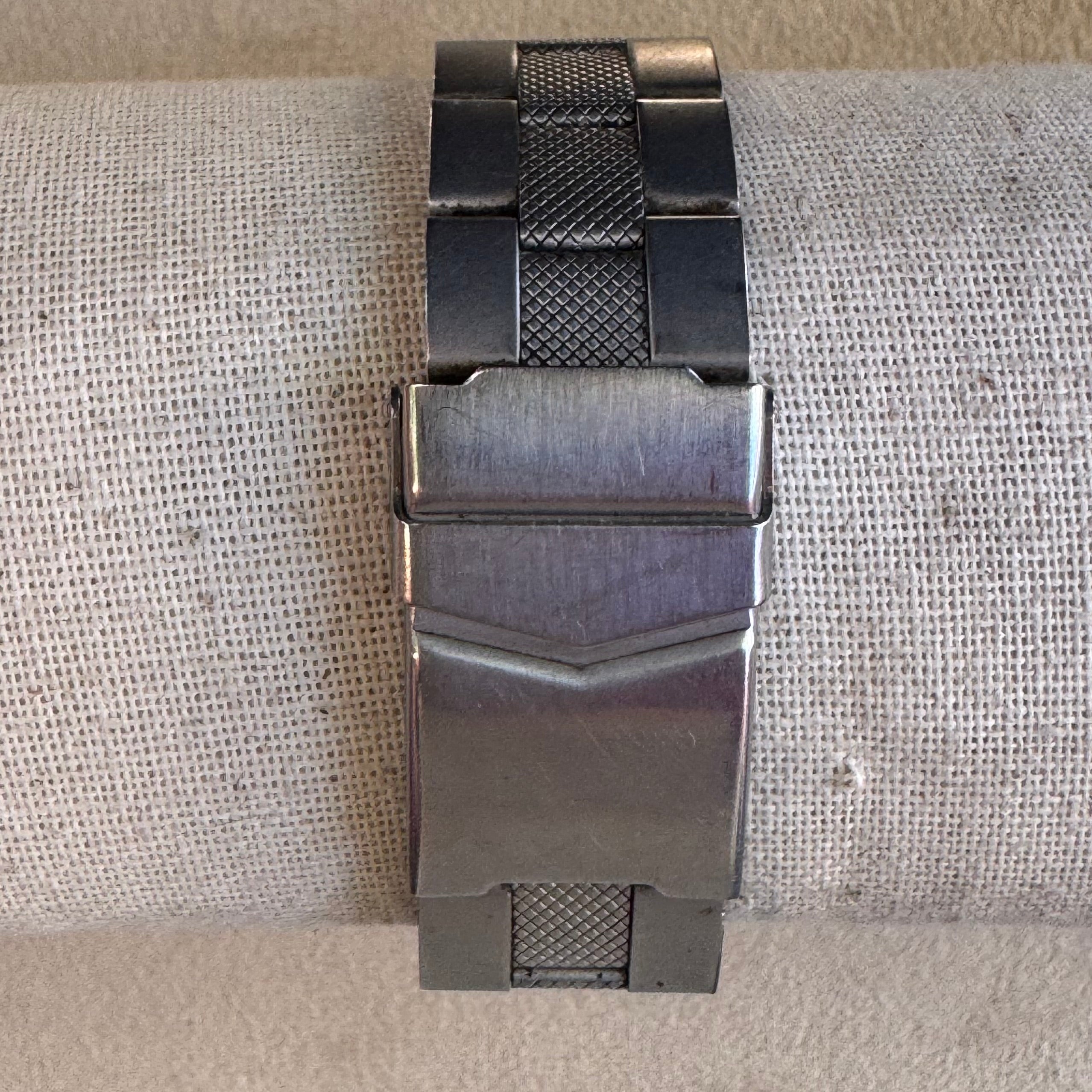 Stainless steel bracelet with textured center links and fold-over clasp