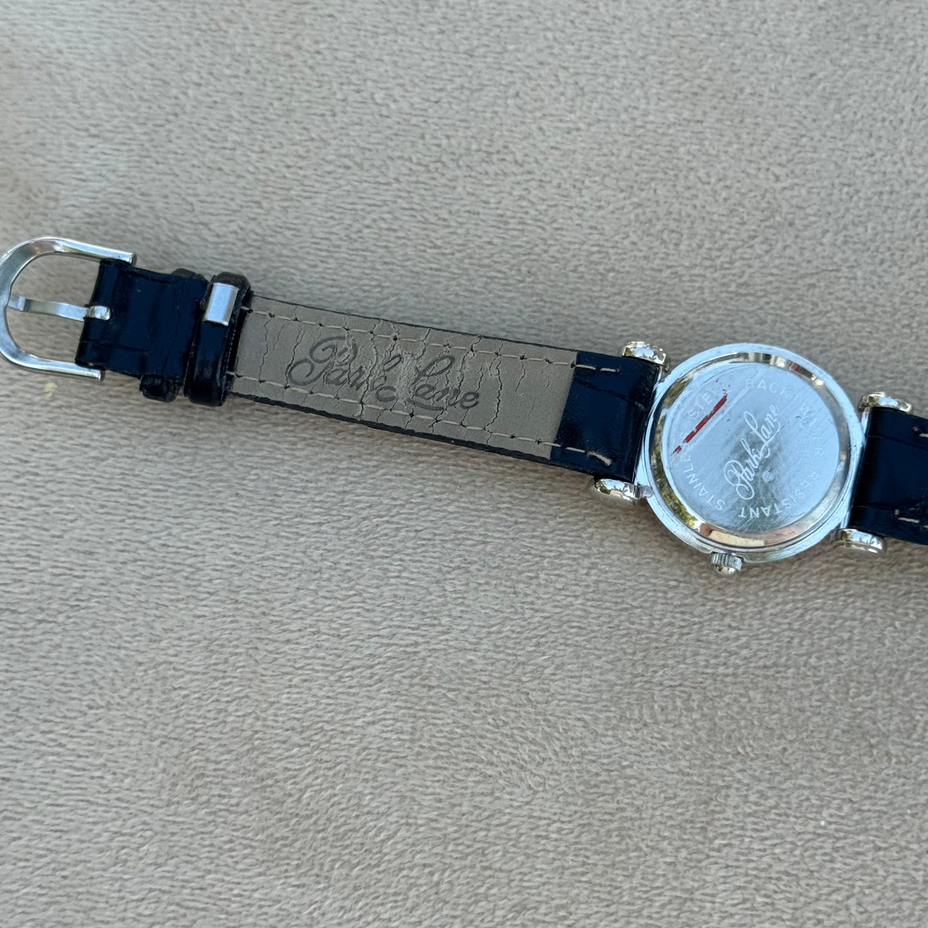 Genuine Leather, Black and Crystal Pearlized Park Lane Watch • Wrist Watch Collector• Feminine Detailed Timepiece• Hidden Treasure• Antique Watch
