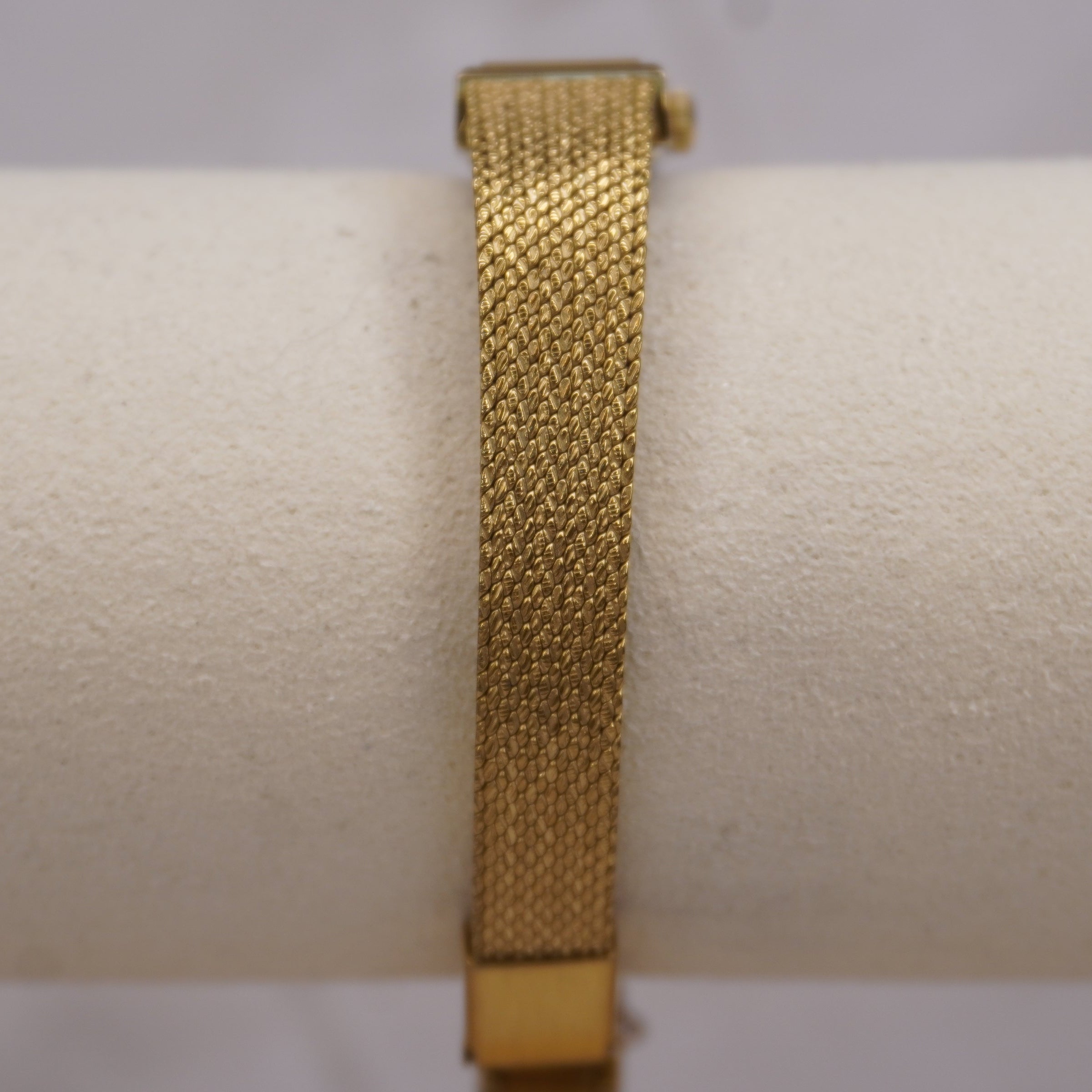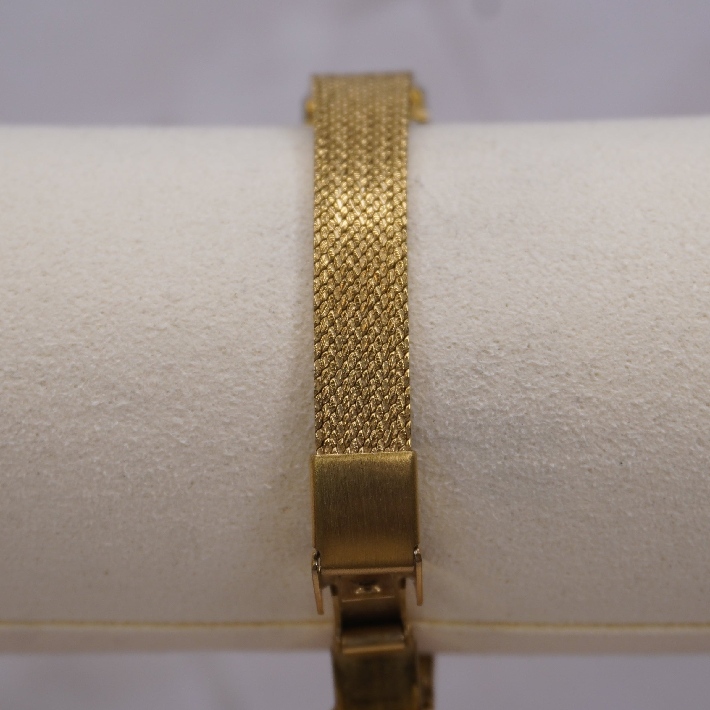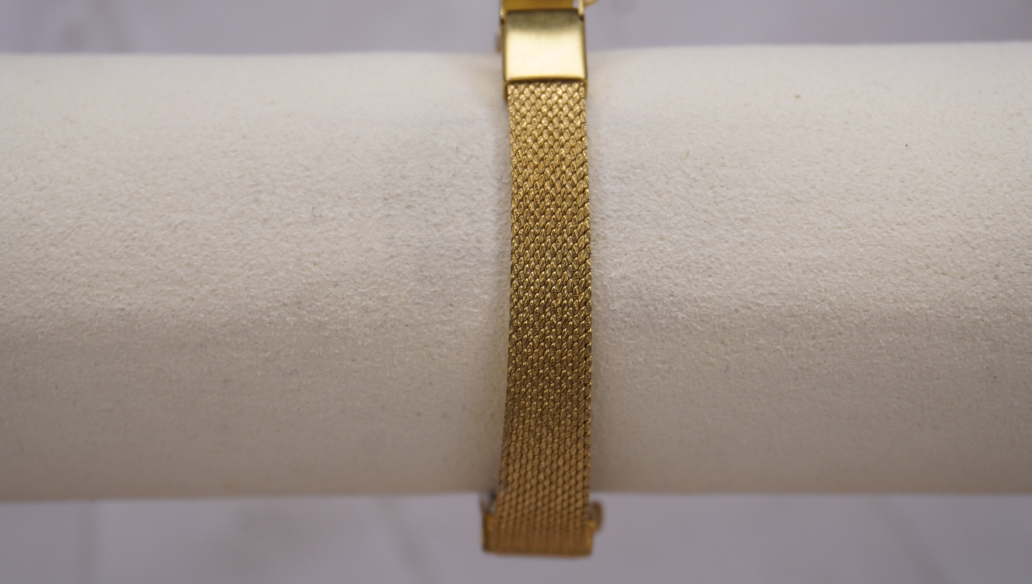 Band: Gold-tone woven mesh bracelet with secure clasp