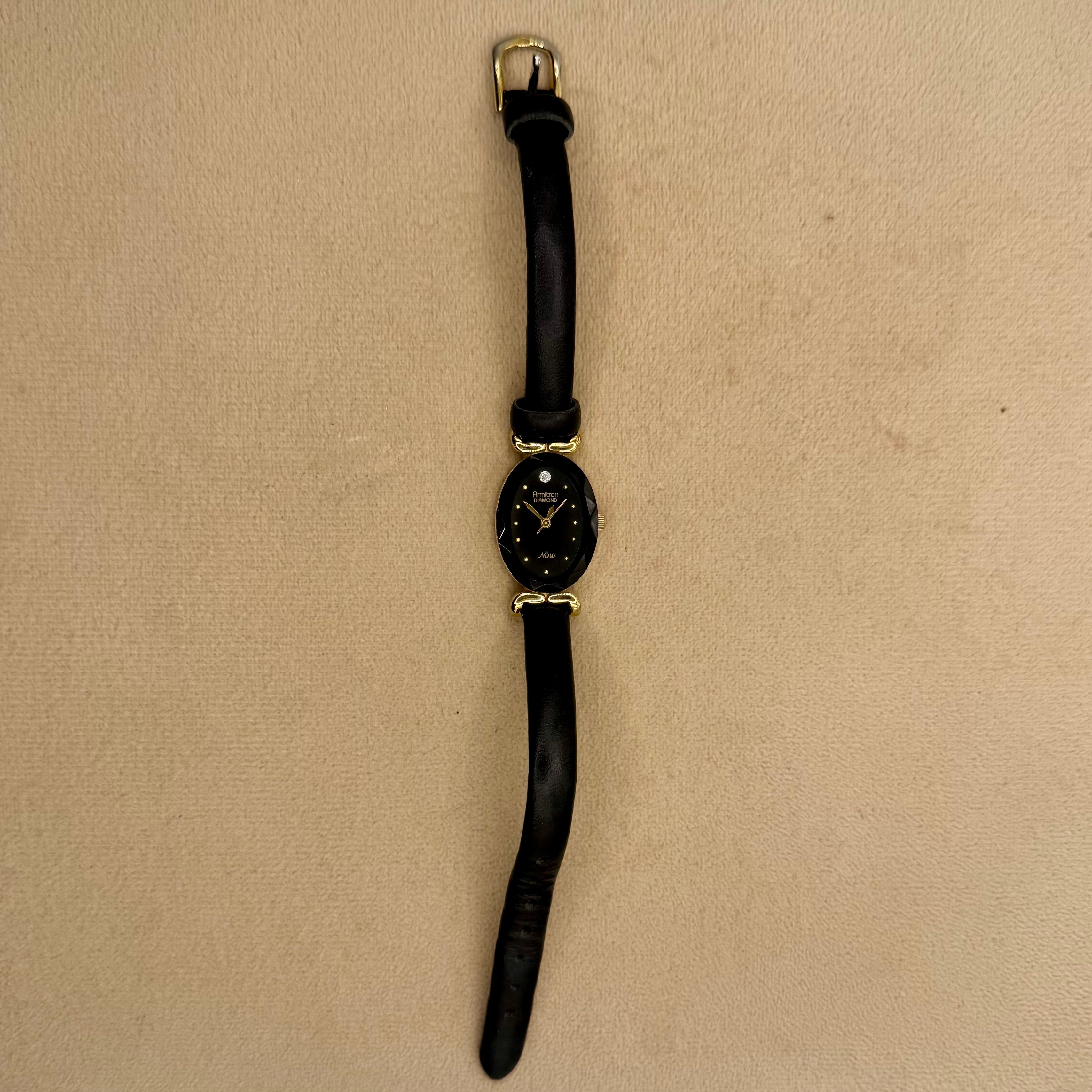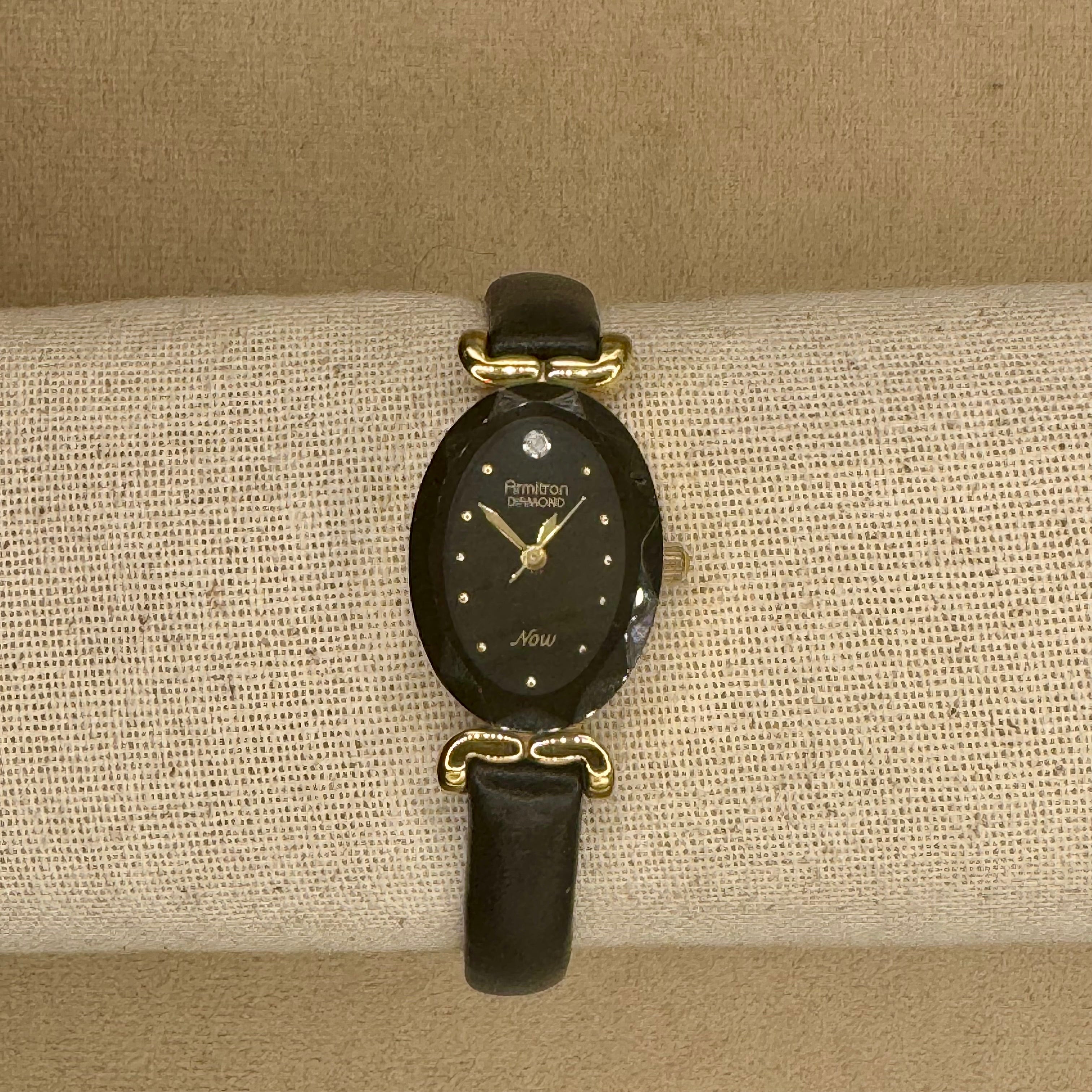 Regal Black Sleek Diamond Vintage Amitron • Collector• Feminine Detailed Timepiece• Hidden Treasure• Antique Watch