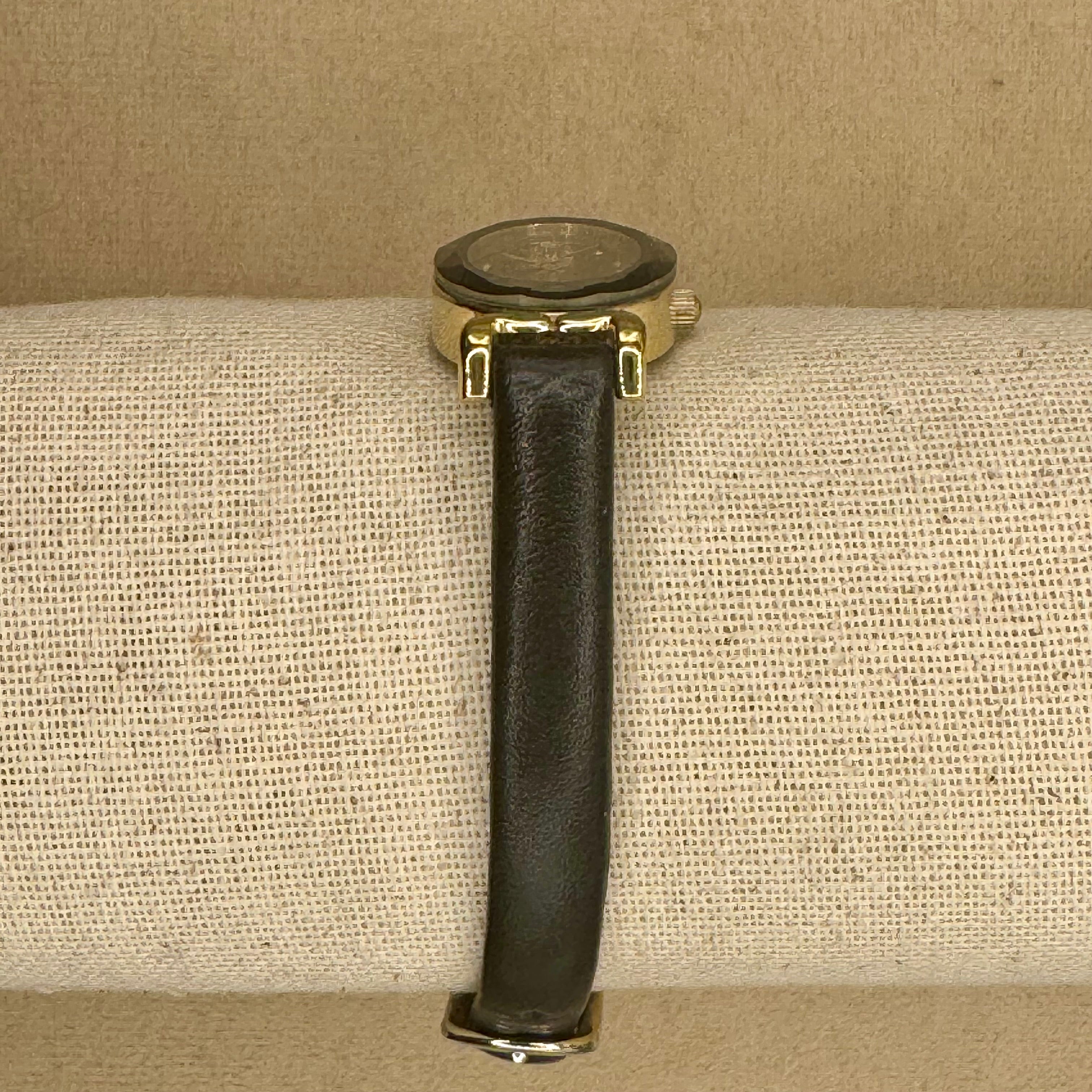 ♡Band Style: 7" Around Potential, Gold Gloss Clasp Options, Thin Black Sleek BandGenuine Leather. Signs of Wear only on Interior of Band
