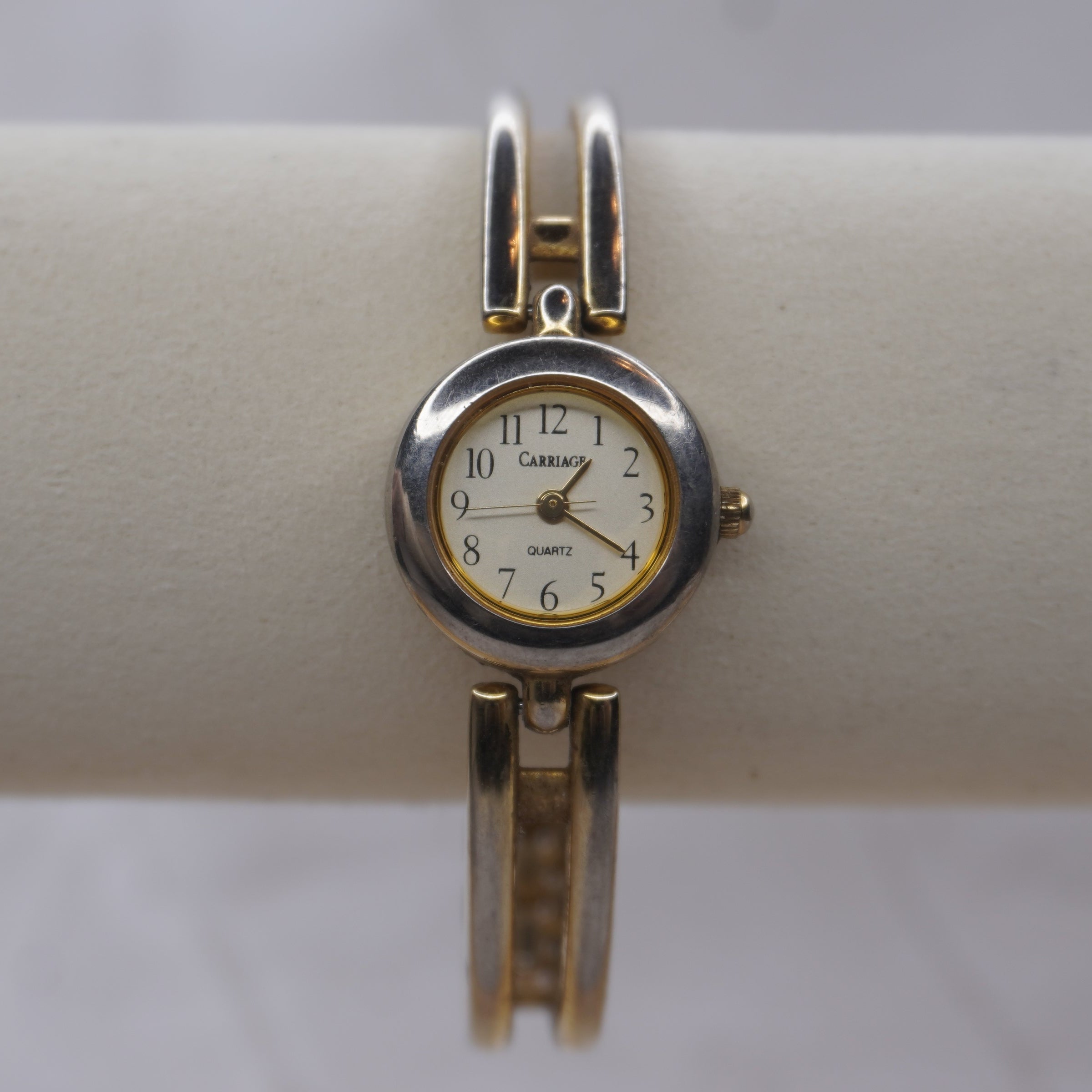 90's Carriage by Timex Women’s Bangle Watch | Two-Tone Gold & Silver Bracelet | Petite Round Dial