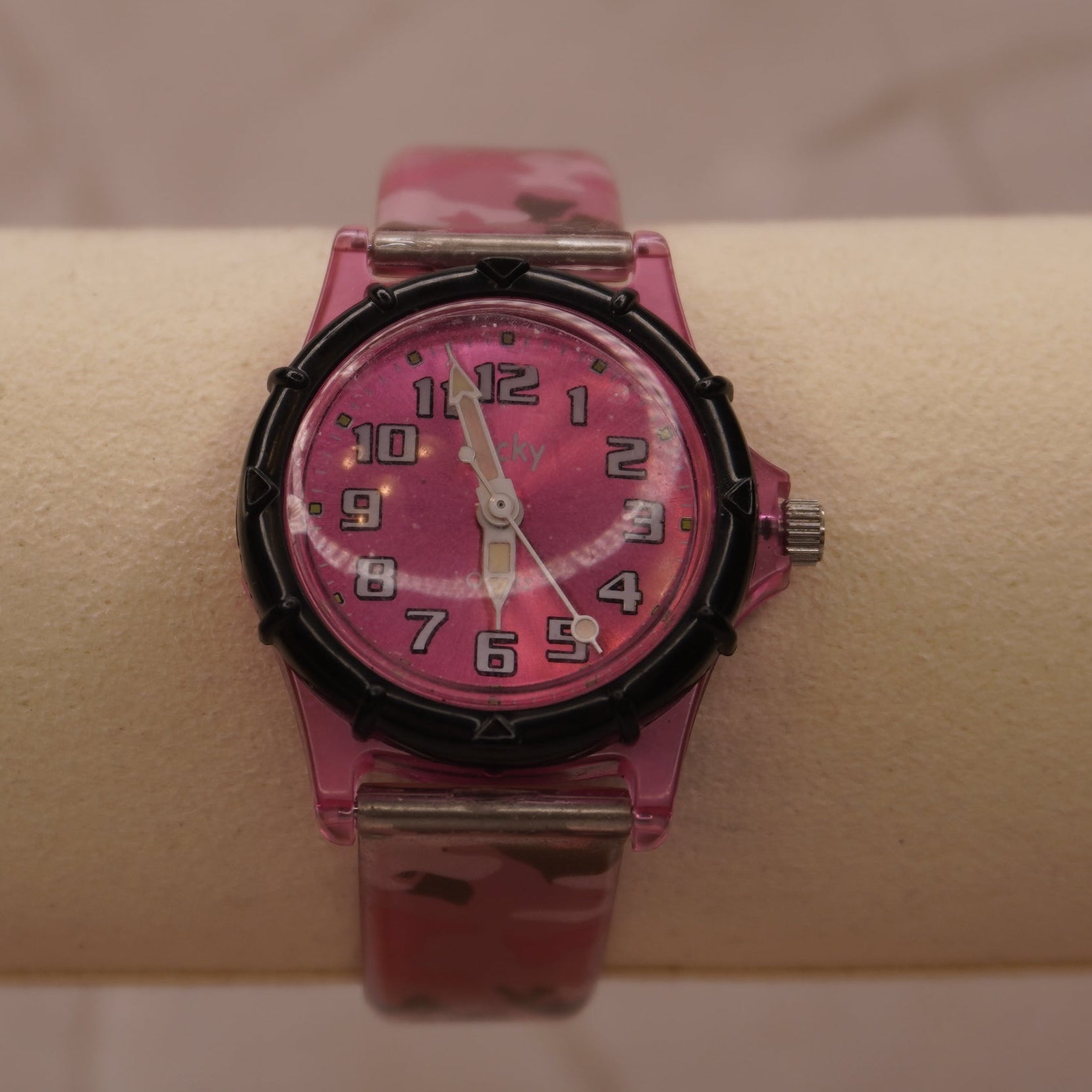 Lucky Pink Camo Quartz Kids Watch | Retro Sport Style Analog Watch | Grace Dreams Vintage Kids Collection