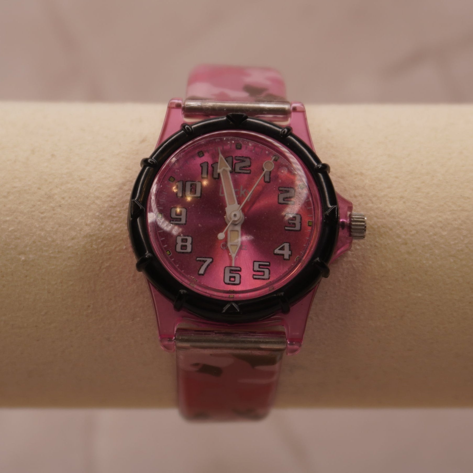 This Lucky Pink Camo Kids Quartz Watch is equal parts bold and playful! Featuring a glossy pink camouflage band and translucent pink case, itβs perfect for kids who love adventure and bright, fun accessories. The easy-to-read analog face makes it ideal for children learning to tell time, while its lightweight design ensures all-day comfort.