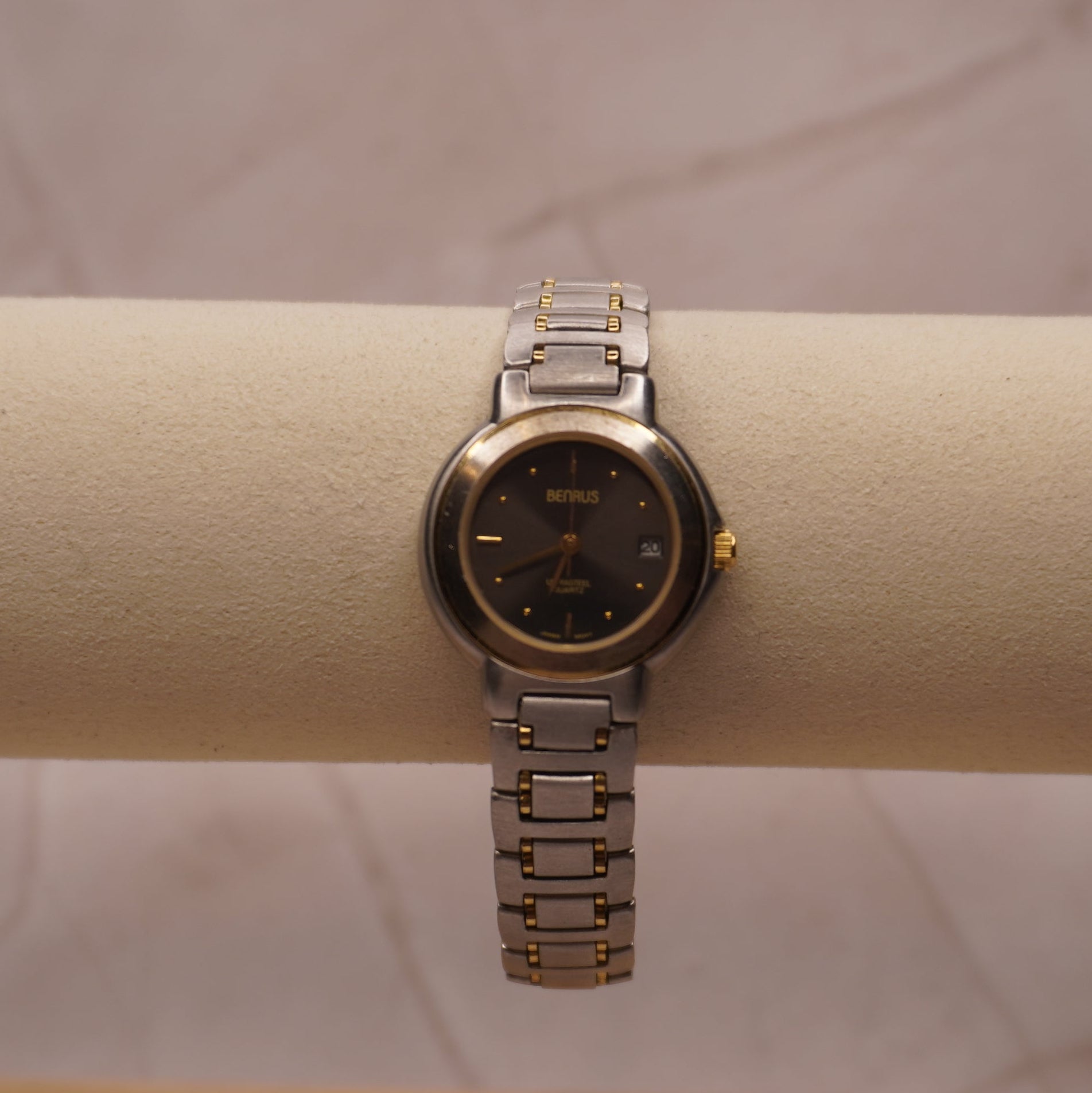 benruswatch, vintagetimepiece, two-tonegold, womenswatch, blackdialwatch, stainlesssteelwatch, minimalistwatch, gracedreamsvintage, classicwatch, quartzvintage