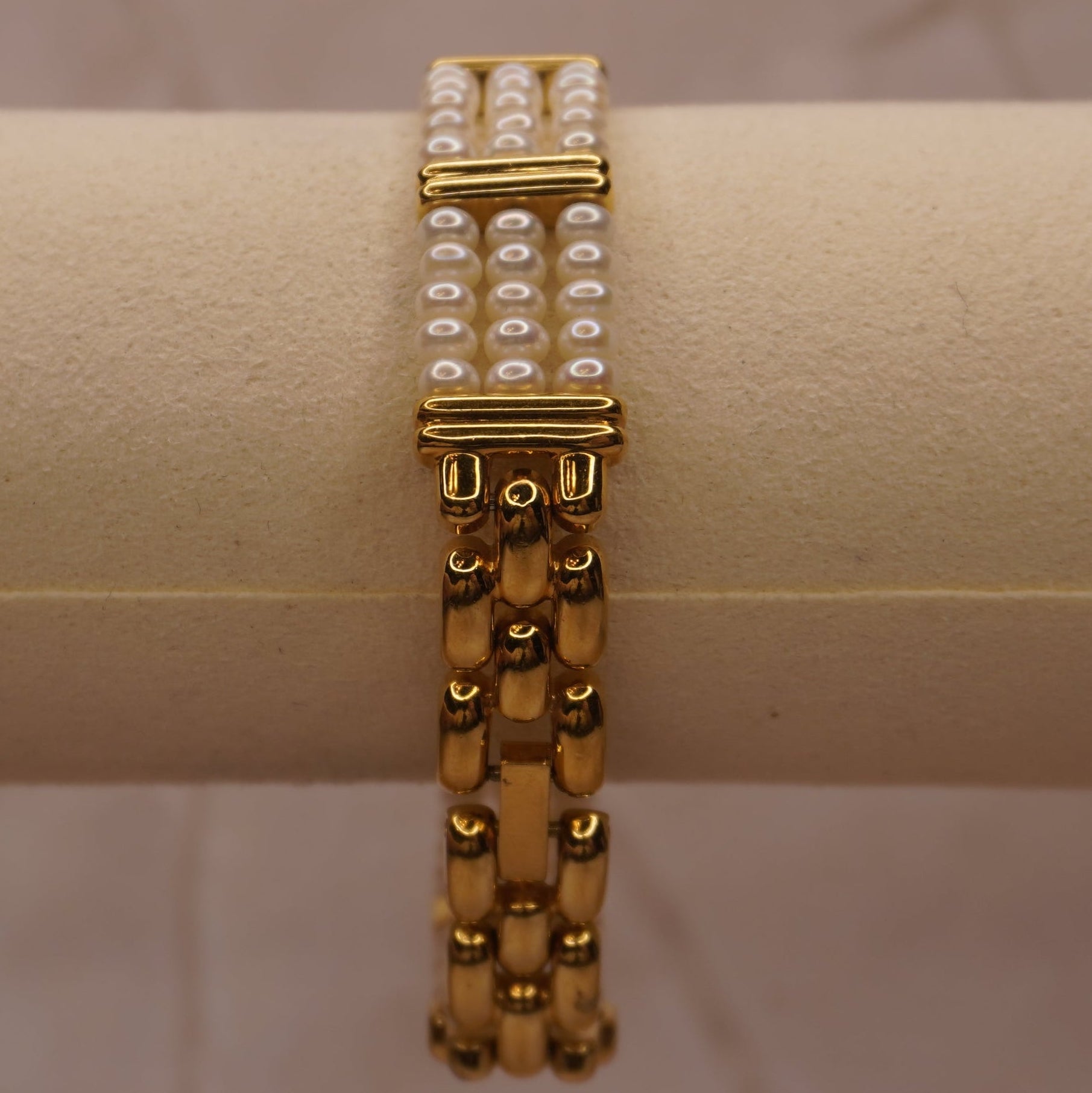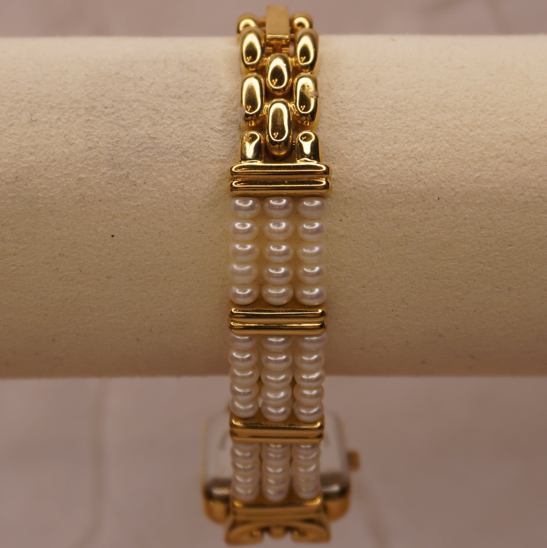 Croton Women’s Gold & Pearl Bracelet Watch | Vintage Quartz Square Face | Elegant Retro Jewelry Watch