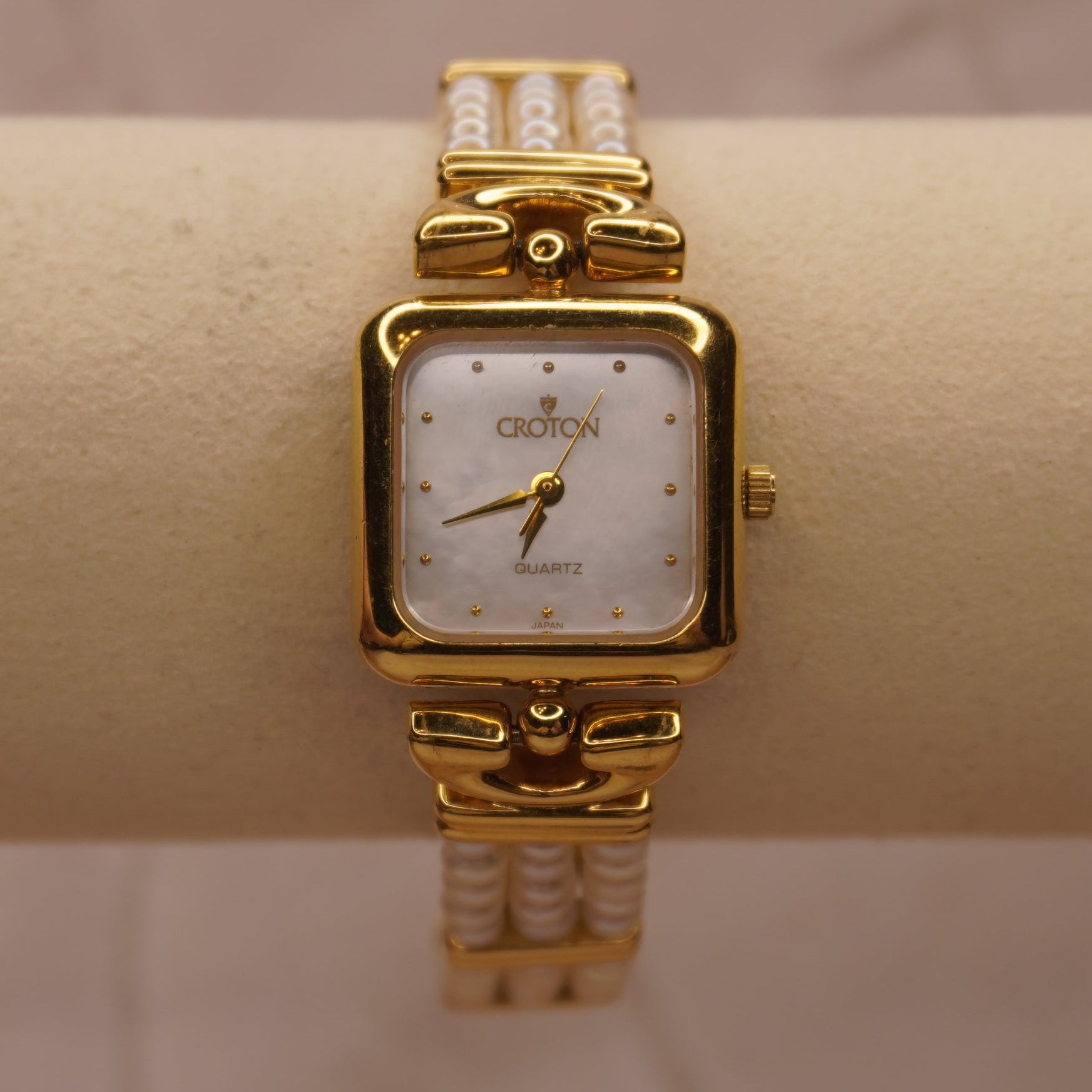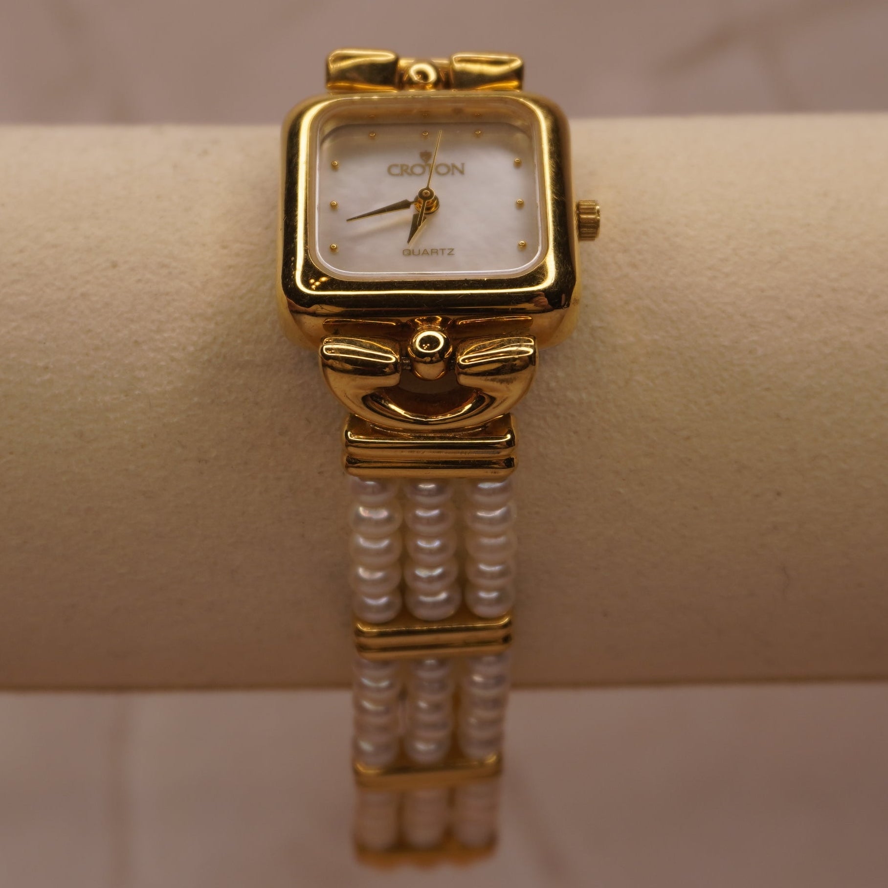 crotonwatch, vintagewomenswatch, goldwatch, pearljewelry, quartzwatch, 90swatch, elegantwatch, gracedreamsvintage, classicstyle, timelessgift