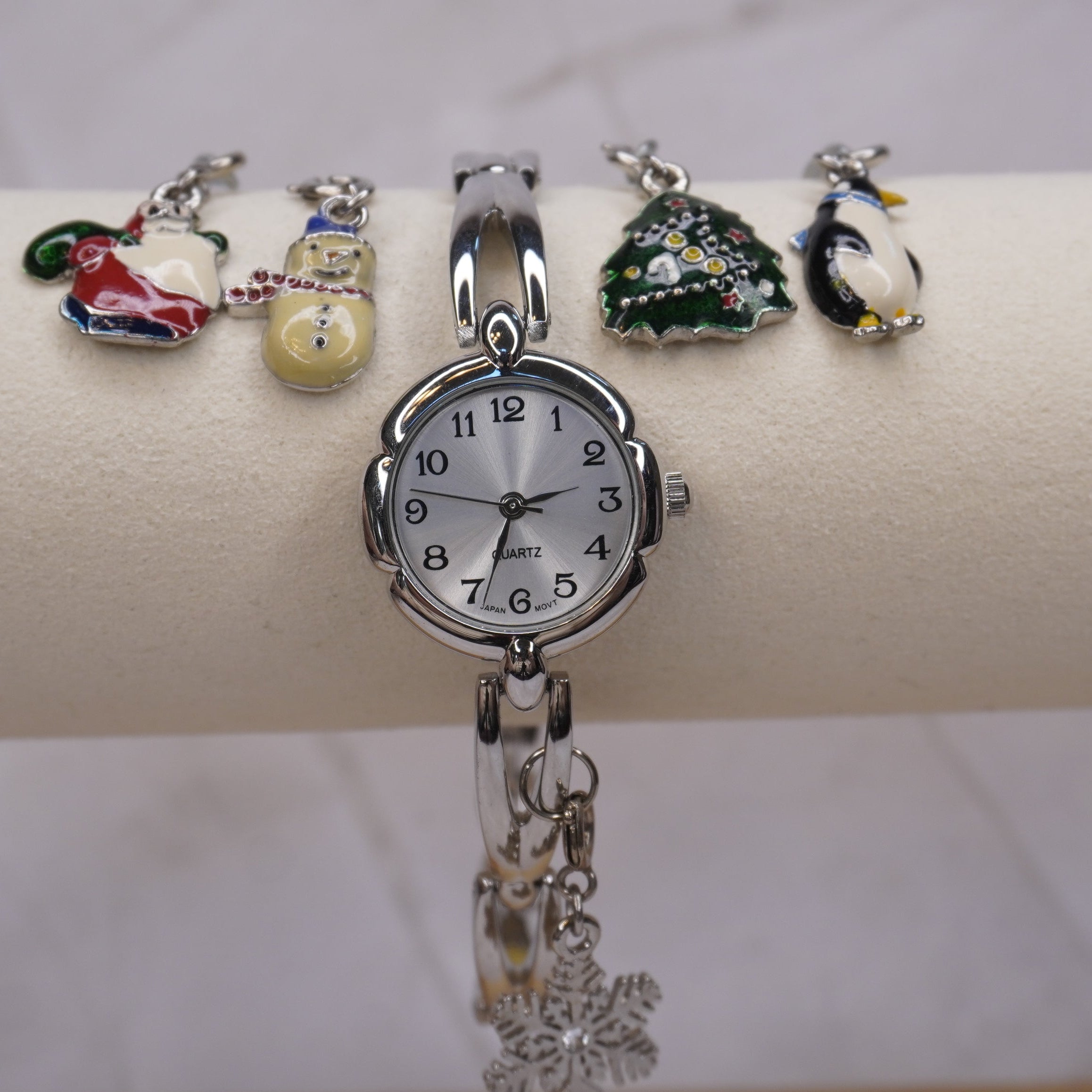 holidaywatch, charmbraceletwatch, christmaswatch, festivewatch, winterfashion, snowflakecharm, holidaygift, womenswatch, gracedreamsvintage, vintagejewelry, christmasaccessory, quartzwatch, collectiblewatch