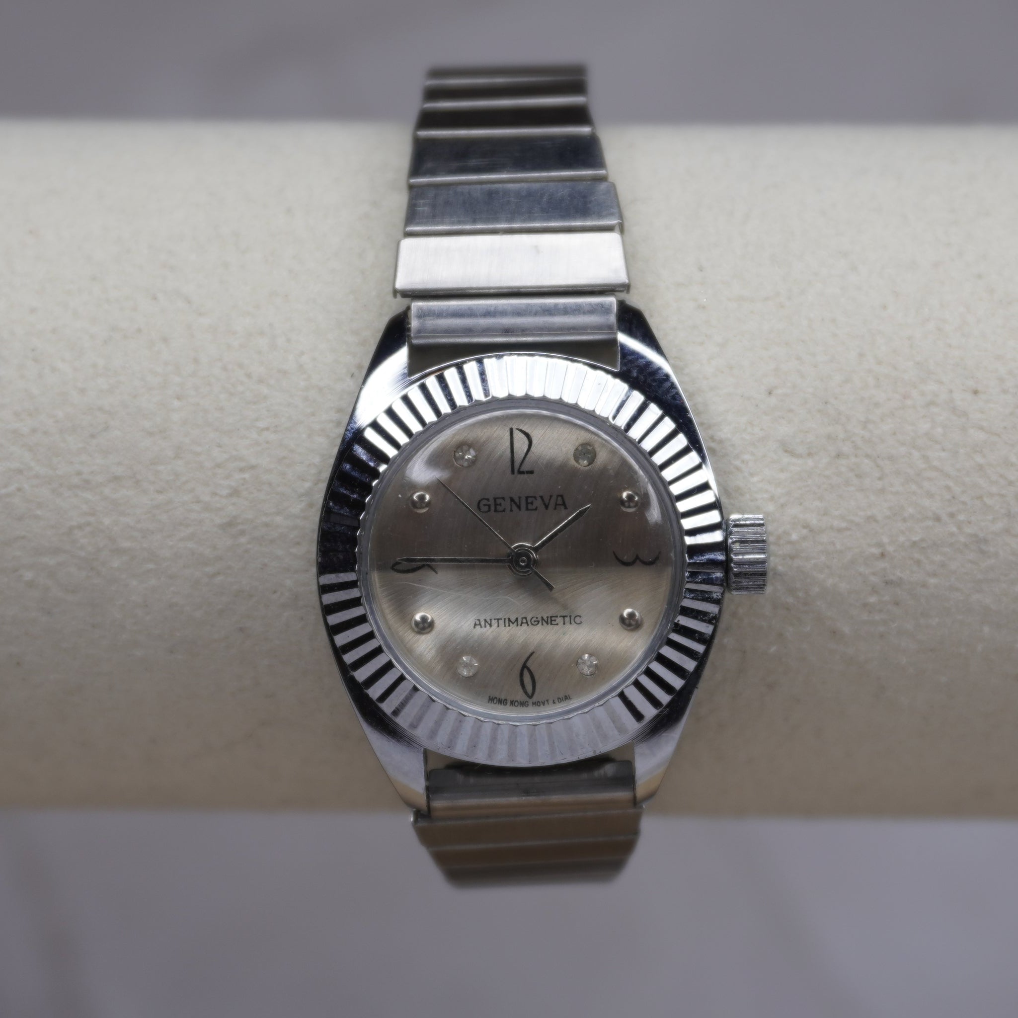 Fluted Bezel, Crystal Hour Vintage Silver Expansion Geneva Watch