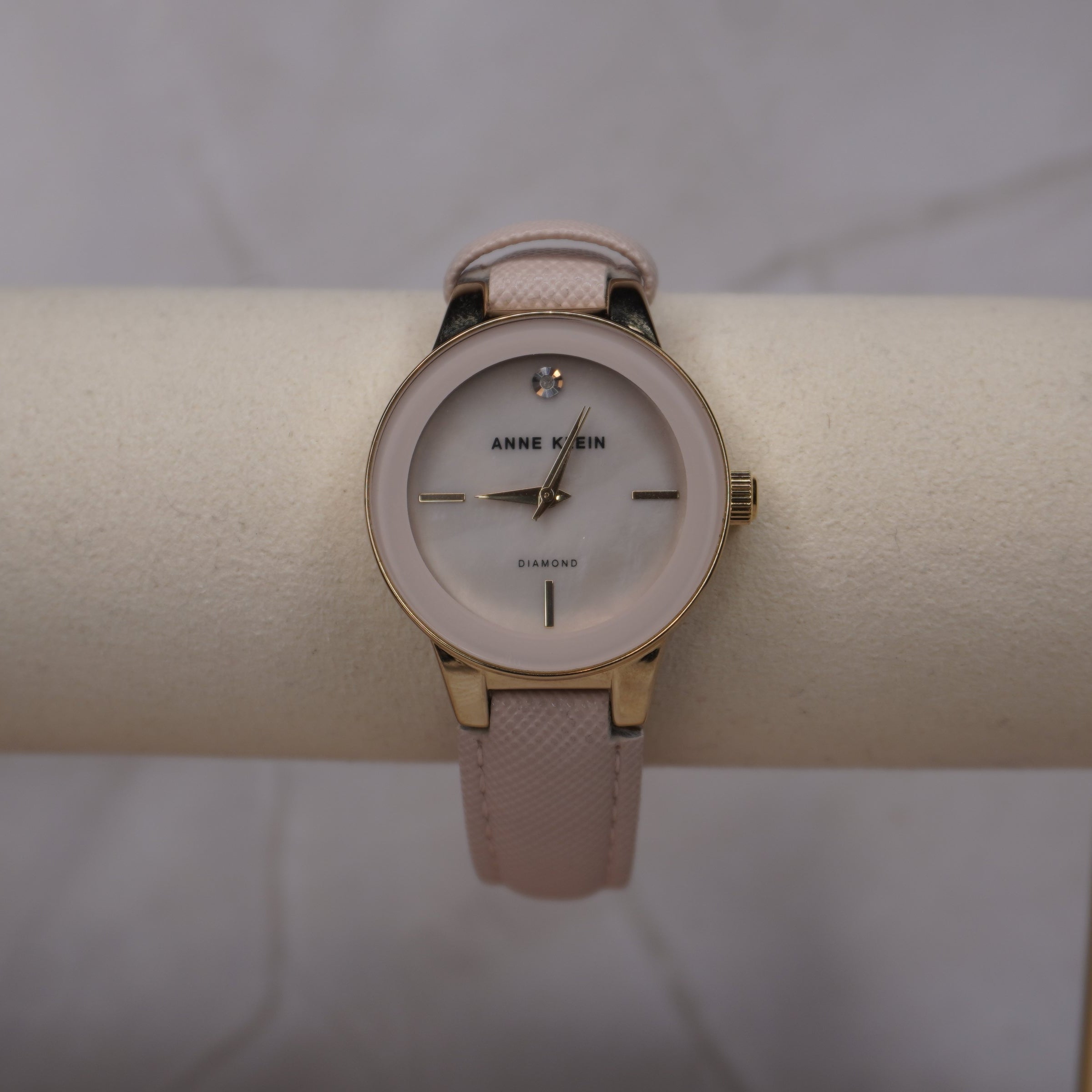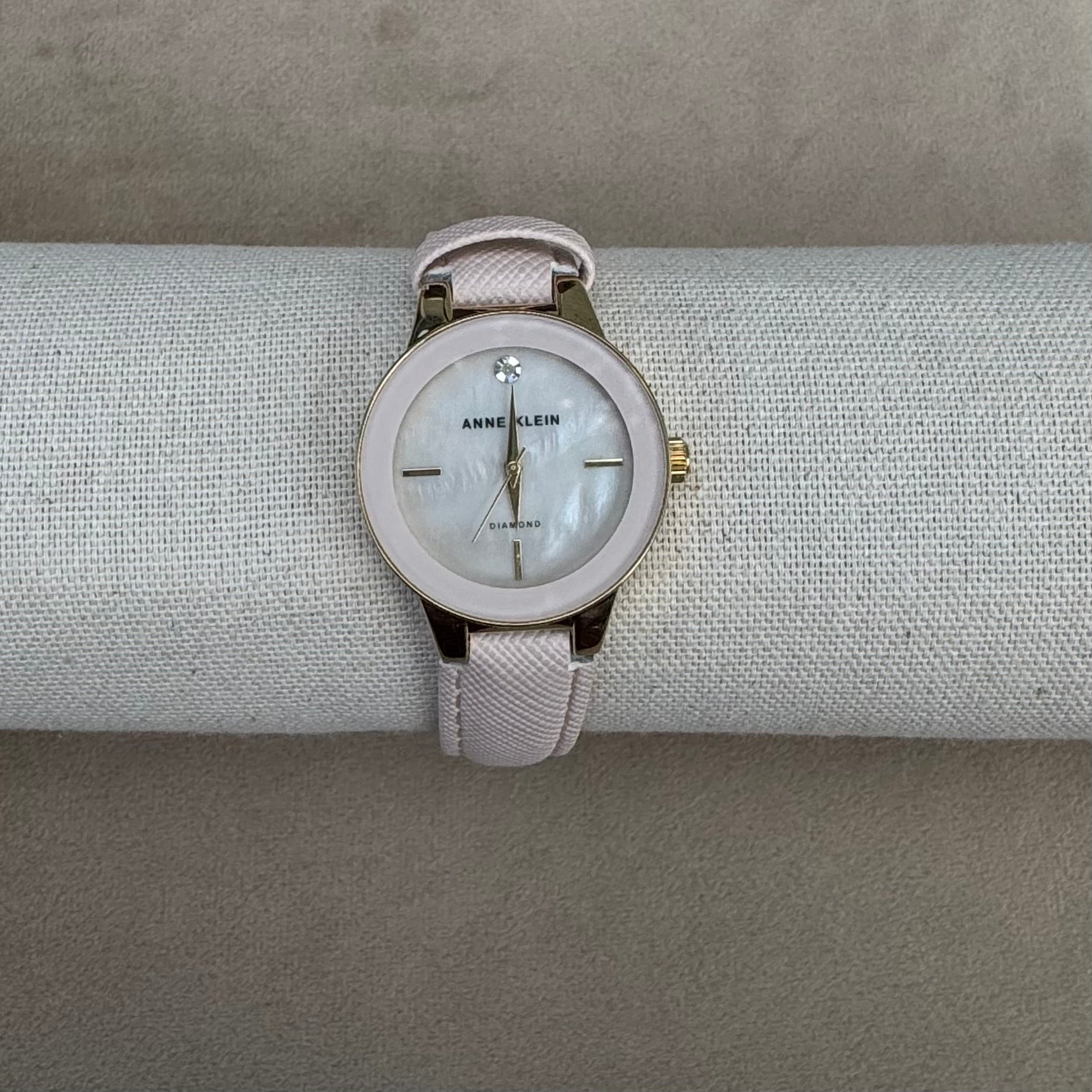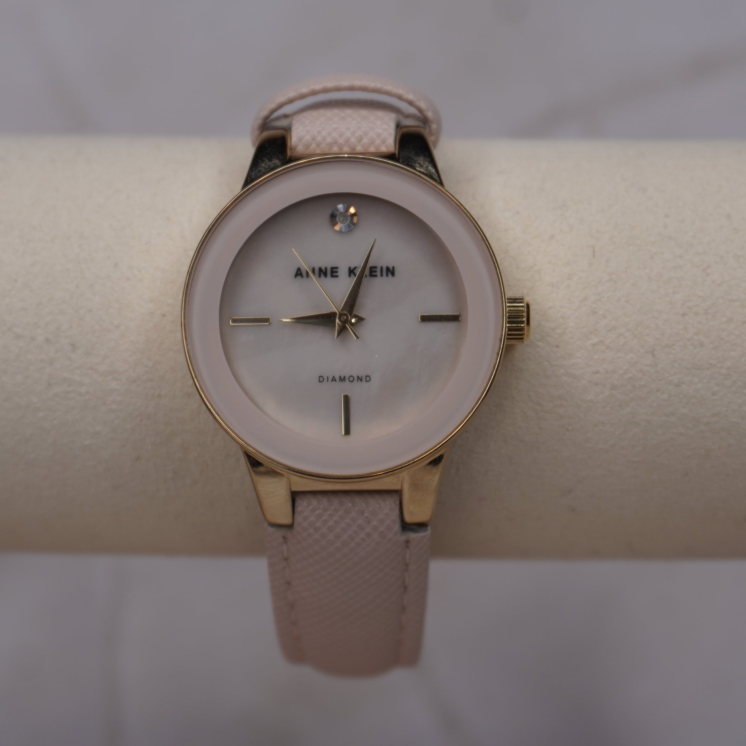 Anne Klein Diamond Accent Watch | Blush Pink Leather Band | Minimalist Gold Trim | Grace Dreams Vintage