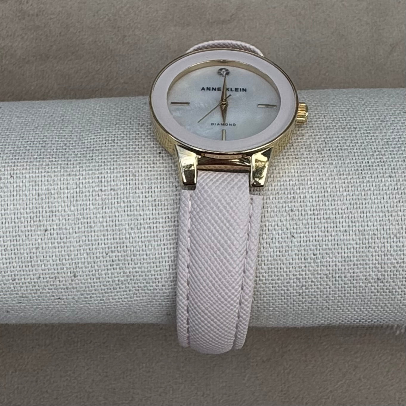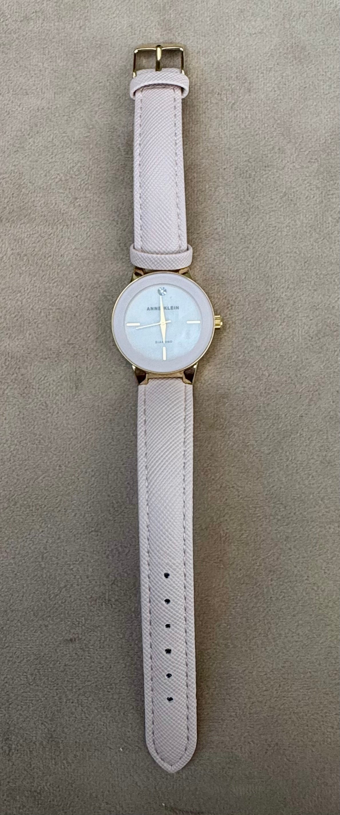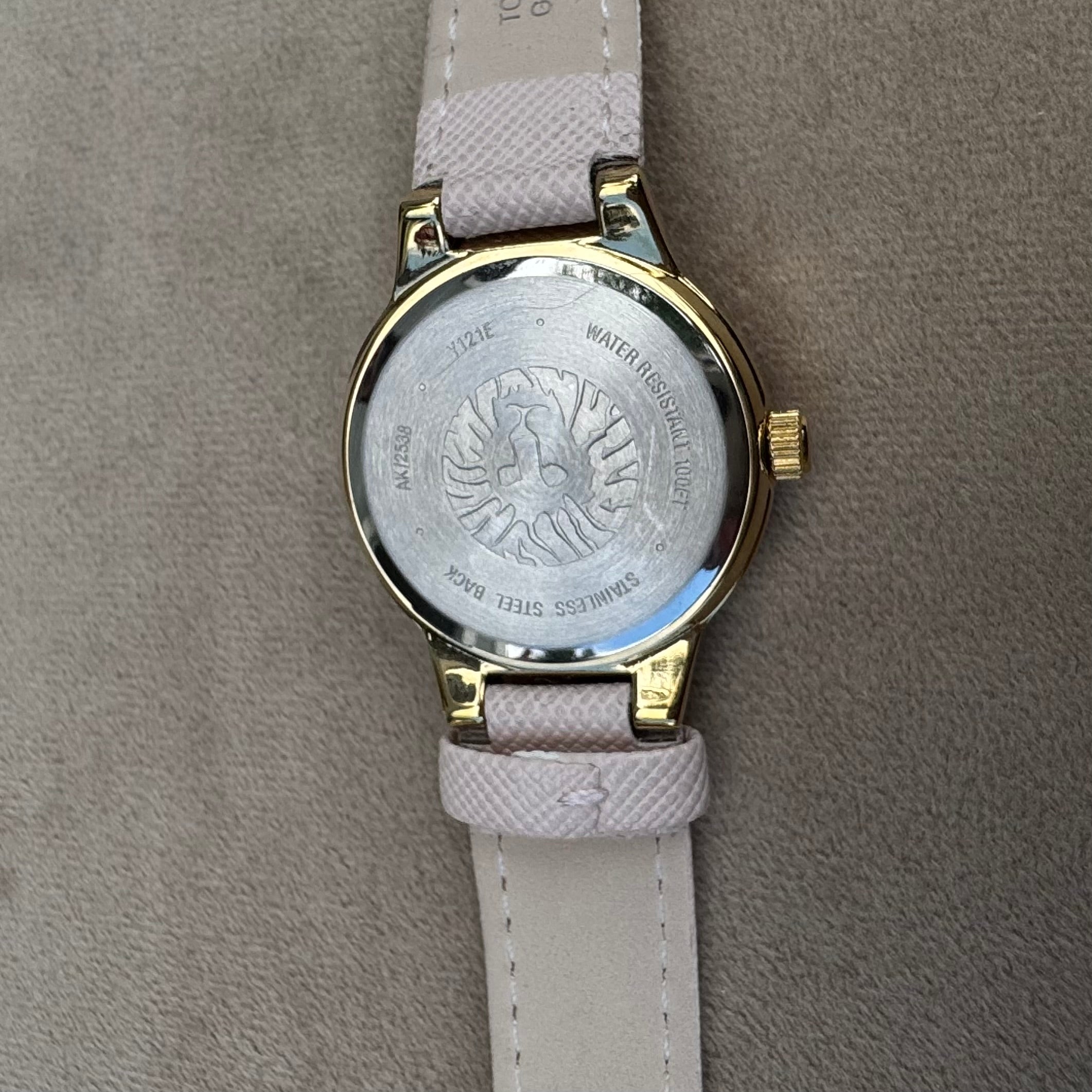 Anne Klein Diamond Accent Watch | Blush Pink Leather Band | Minimalist Gold Trim | Grace Dreams Vintage