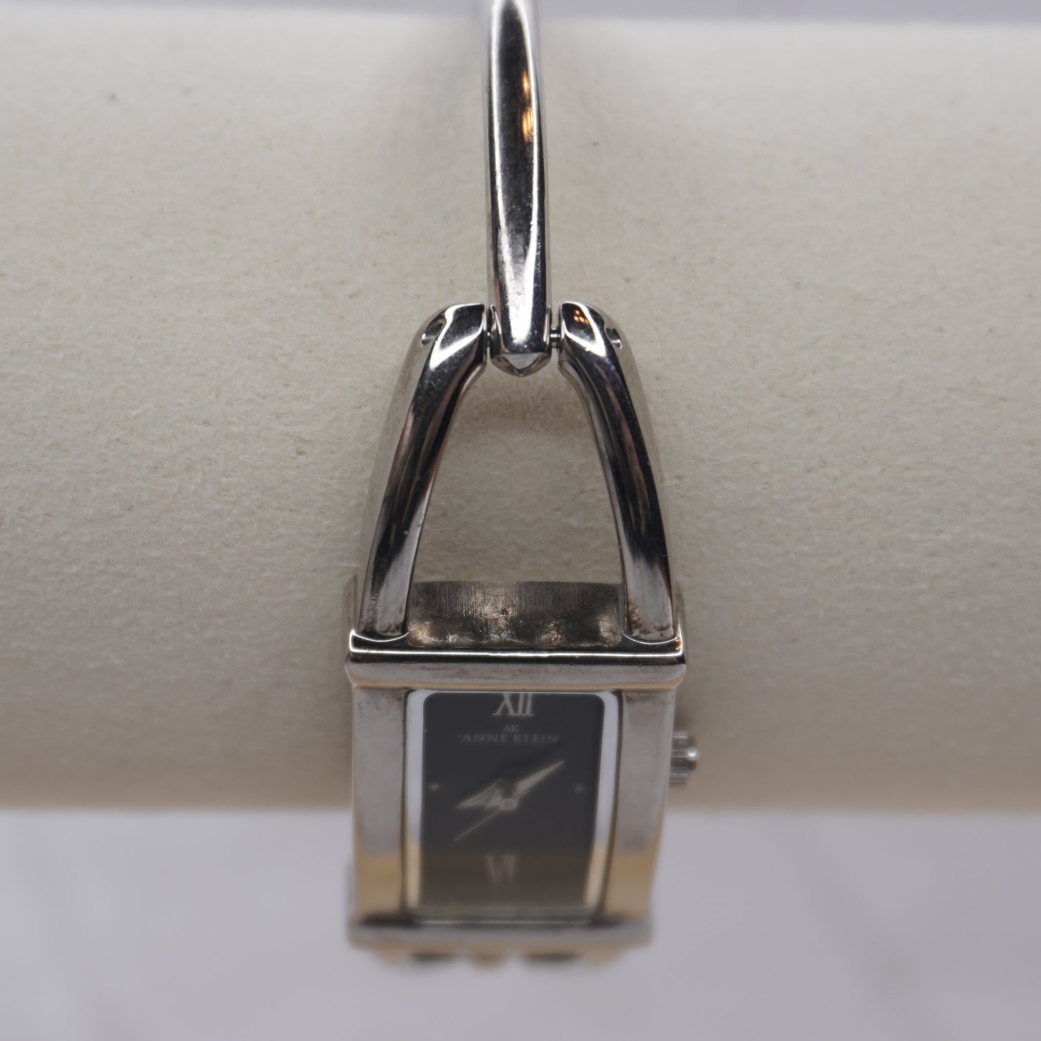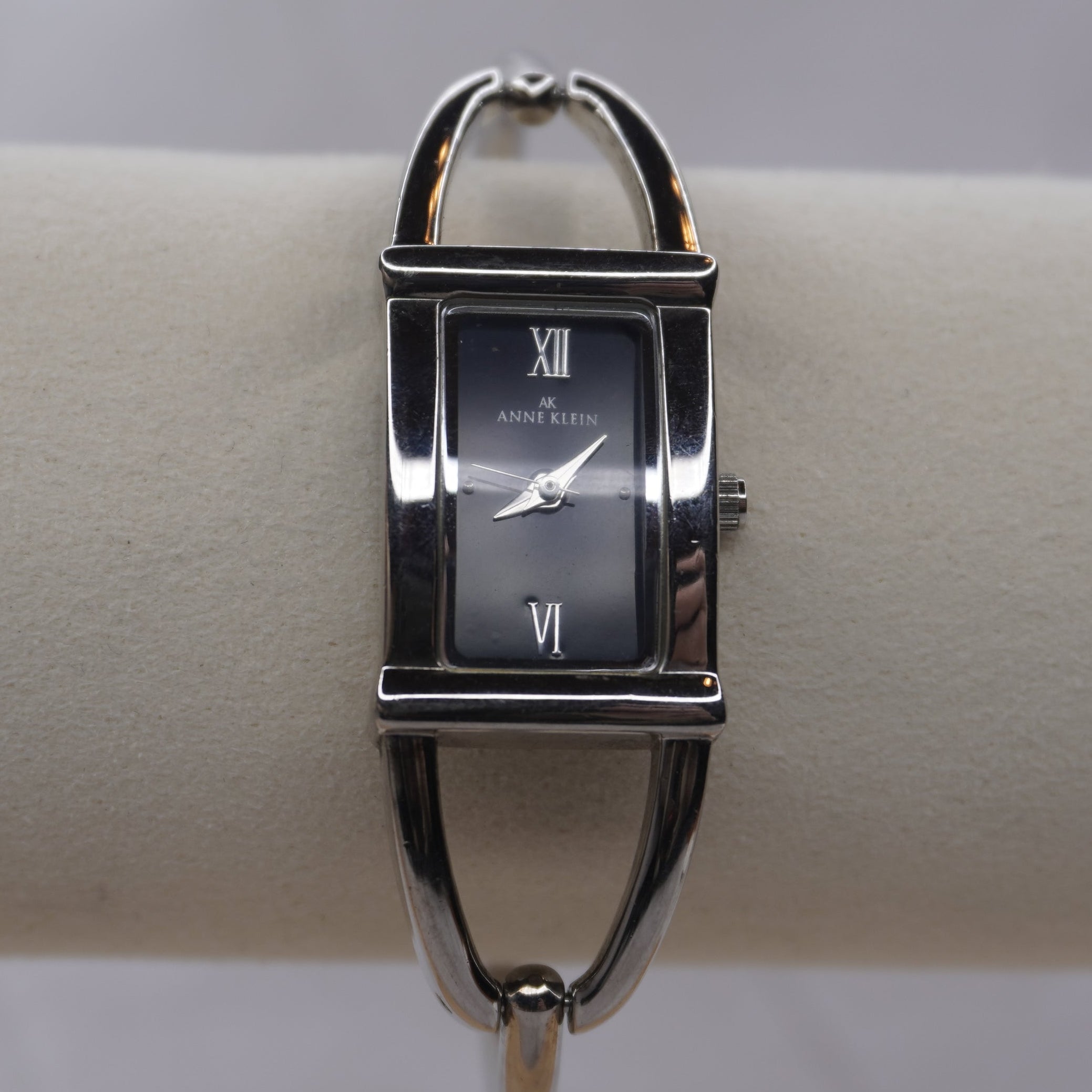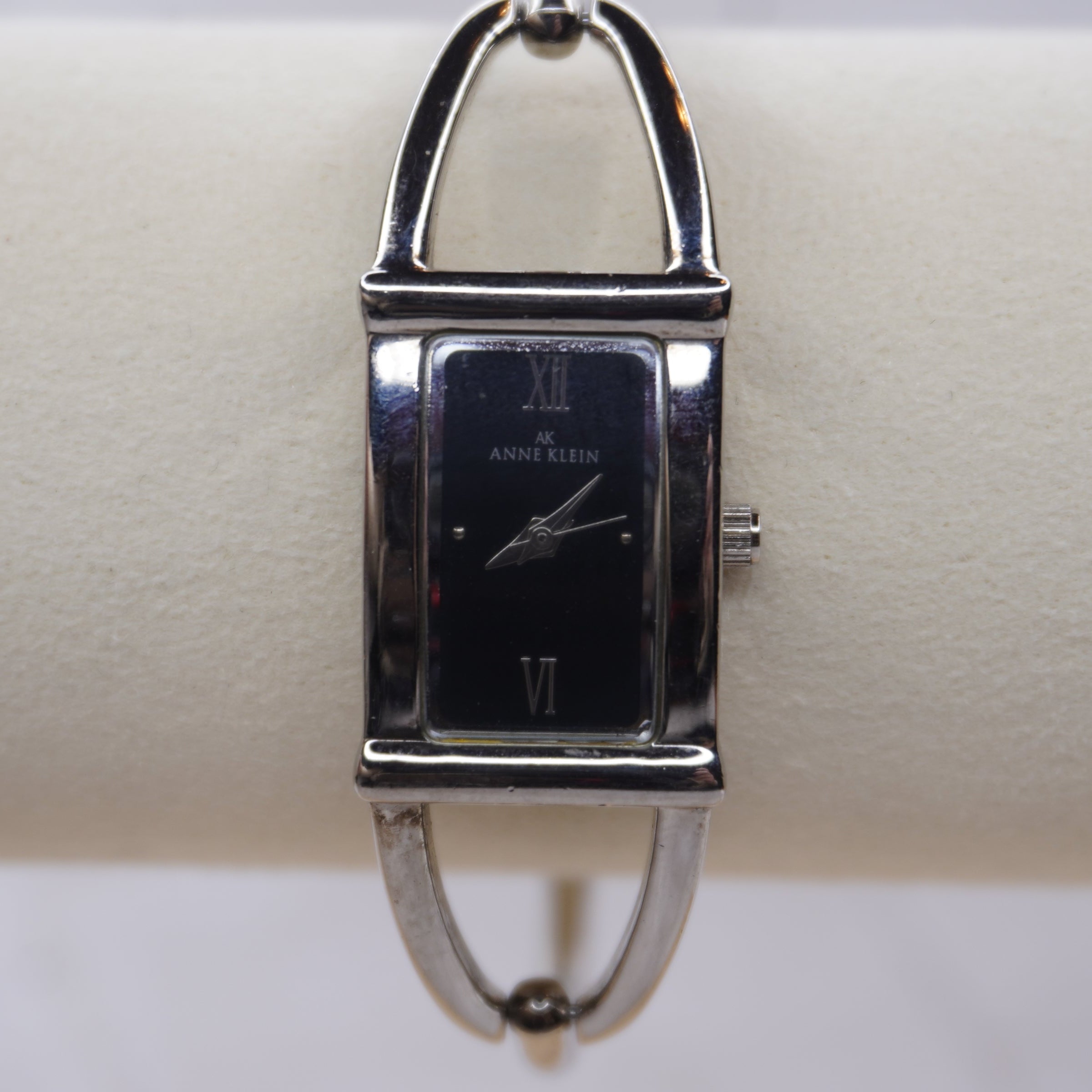 Anne Klein Silver Bangle Watch | Tall Rectangular Black Dial | Minimalist Women’s Dress Watch | AK