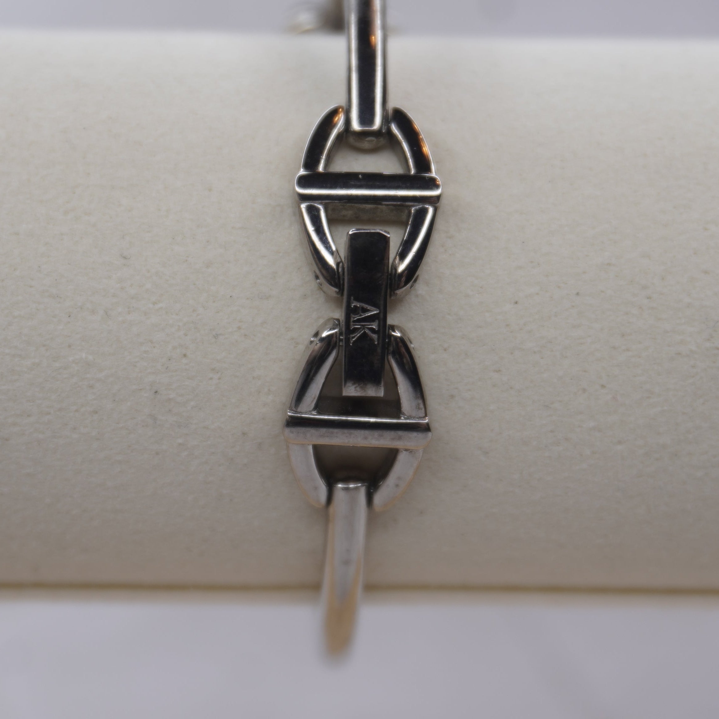 The unique open bangle bracelet design adds an elegant, jewelry-like quality, making this piece perfect for dressy outfits, workwear, or everyday polished style. Lightweight and comfortable, this classic AK design blends simplicity with high-end fashion.