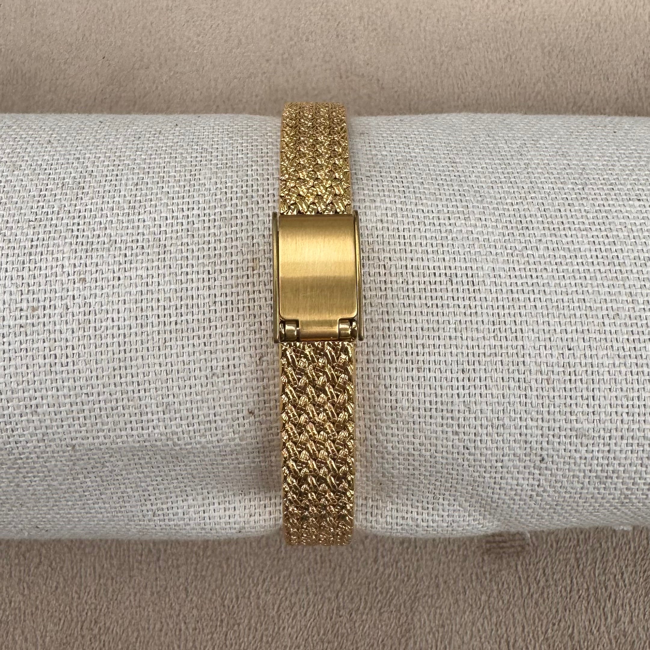 Band: Gold-tone woven mesh bracelet with clasp closure
