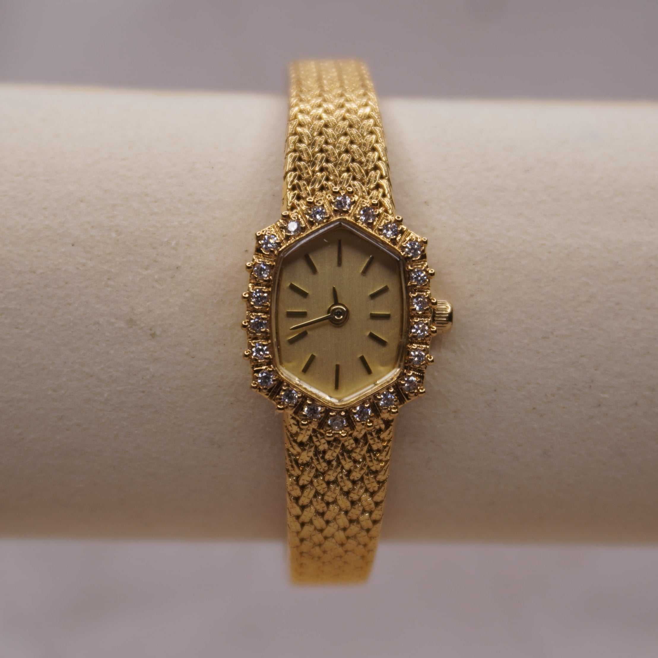 Case: Gold-tone with faceted crystal halo