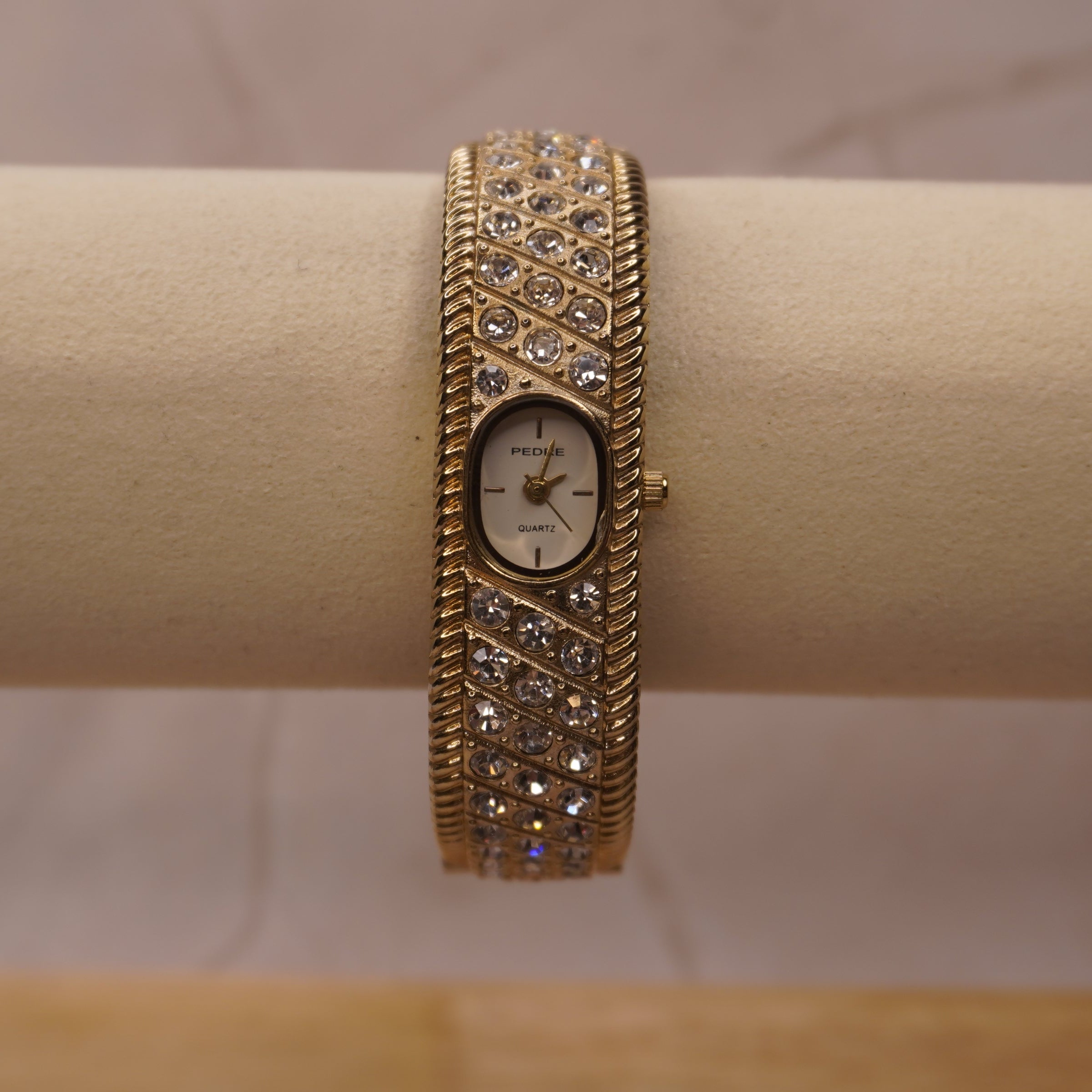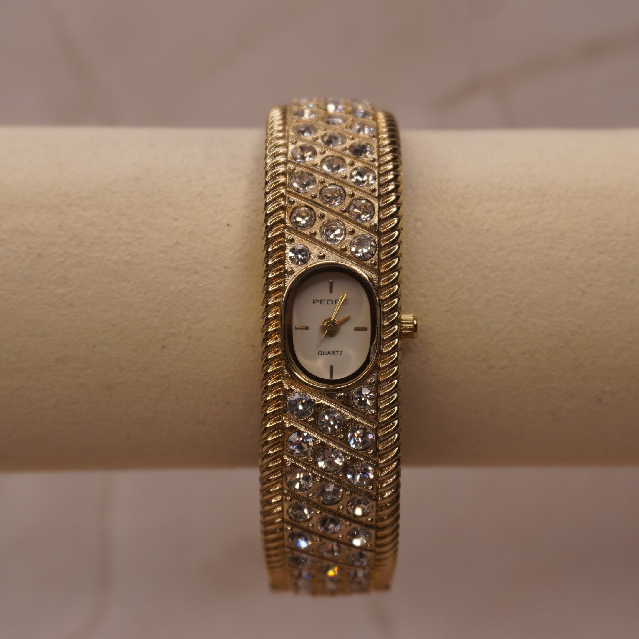 Pedeé Gold Rhinestone Bracelet Watch | Vintage Quartz Women’s Jewelry Watch