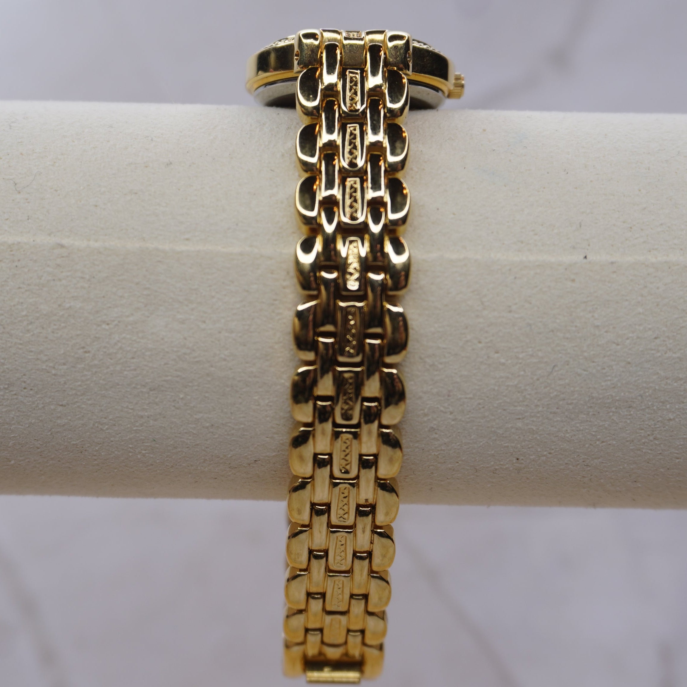 ♡Watch Face: One Inch Face, Etched Gloss Gold Face, Diamond Indicator Hour Marks, Braided Etched Perimeter.