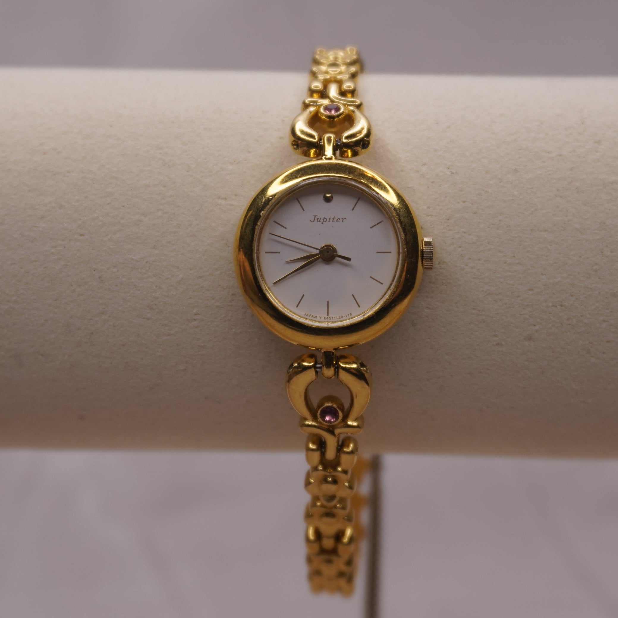 Dainty Floral Regal Jupiter Pink Gem Vintage Gold Watch