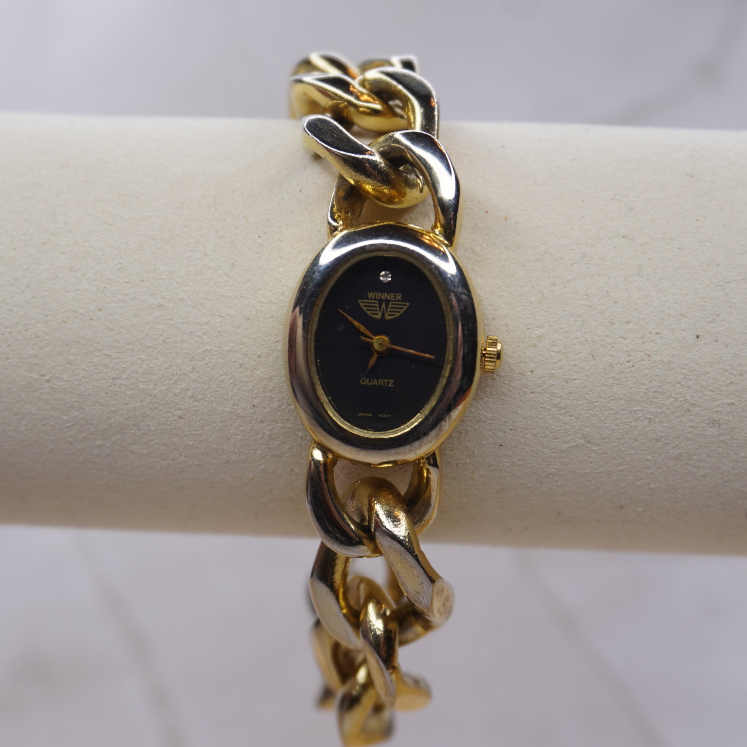 Modern Chic Black and Gold Chain Winner Watch • Wrist Watch Collector• Feminine Detailed Timepiece• Hidden Treasure• Antique Watch