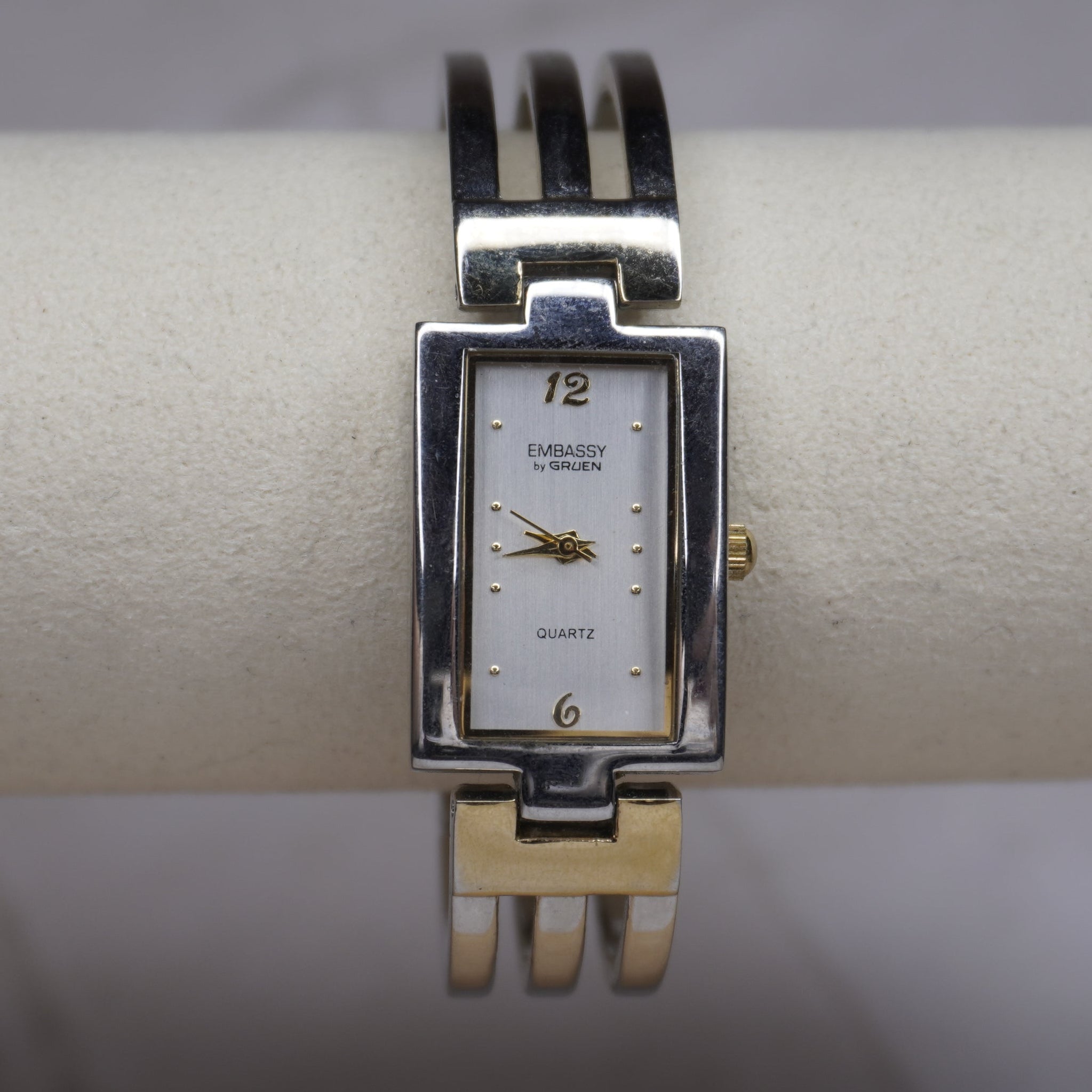 Embassy by Gruen Women’s Watch – Two-Tone Silver & Gold, Rectangular Dial, Vintage Quartz Bracelet Watch – Fits 6.25” Wrist