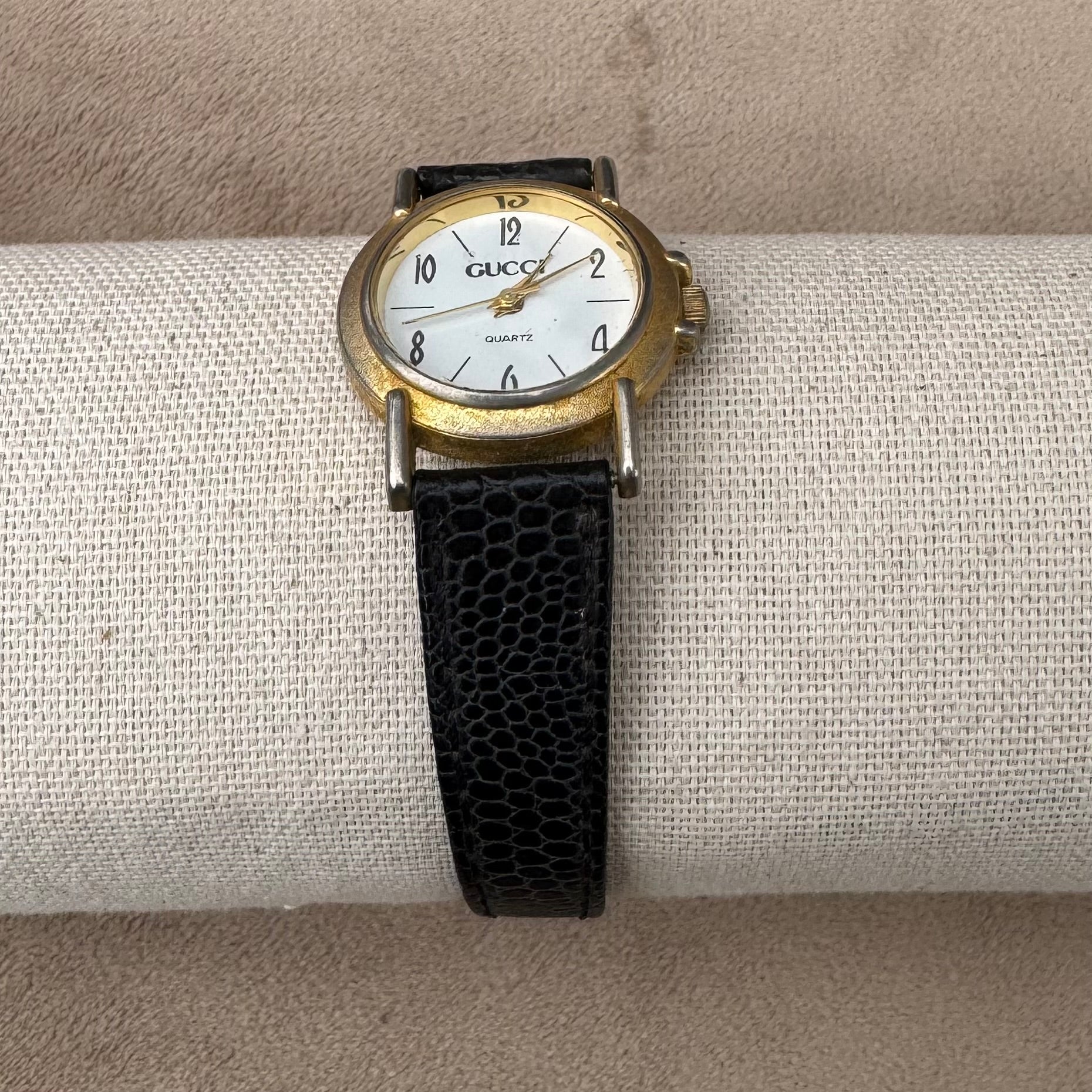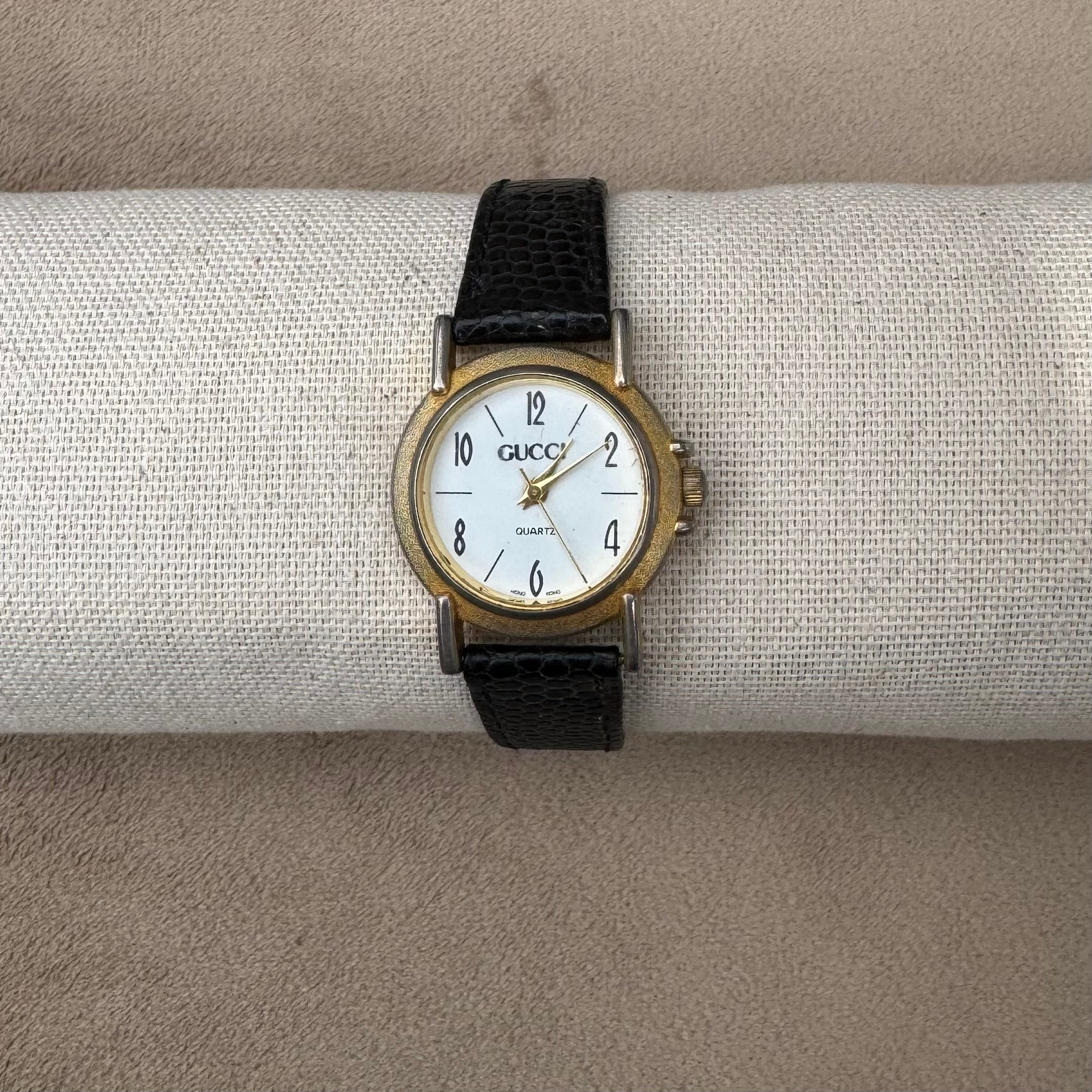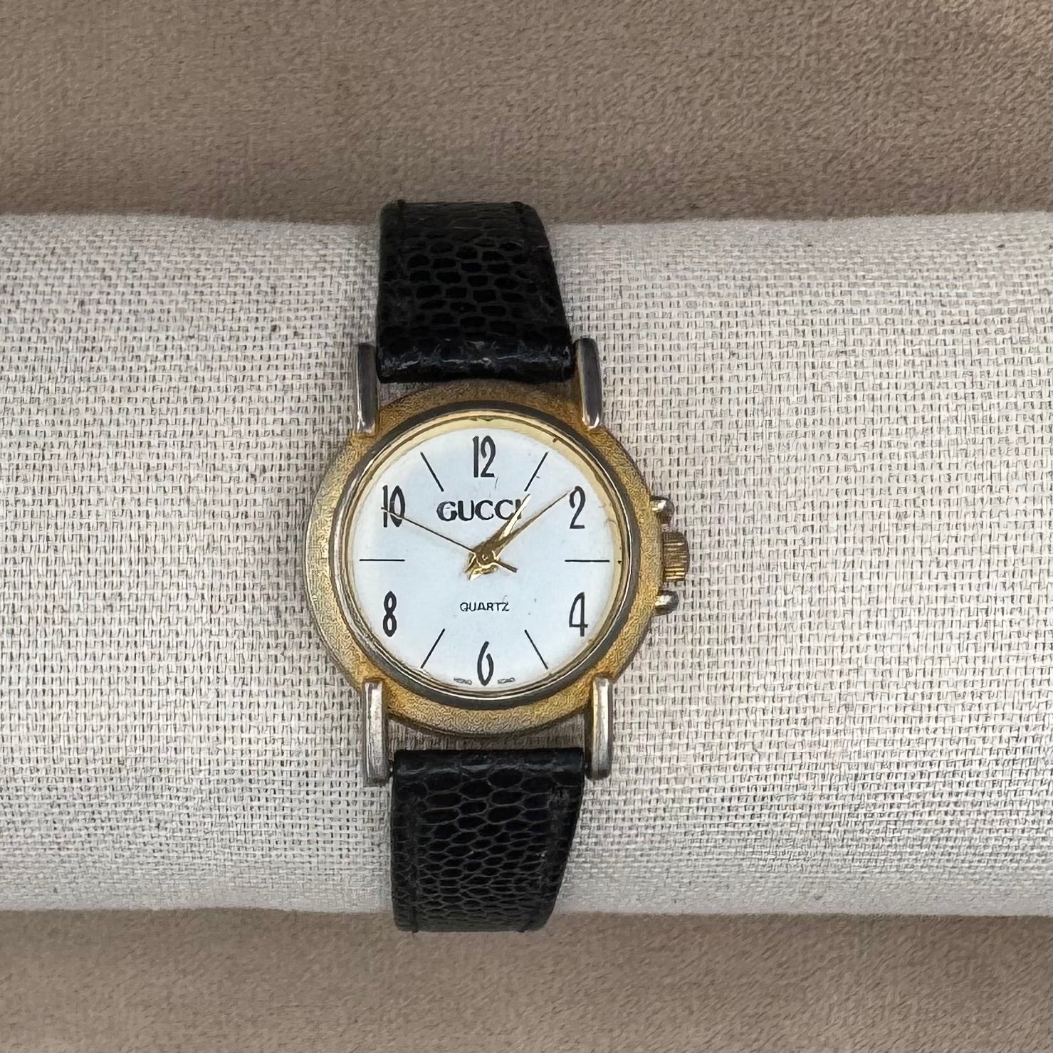 Gucci 1990's Vintage Women’s Quartz Watch | Gold-Tone Bezel | Black Leather Band | Classic Design
