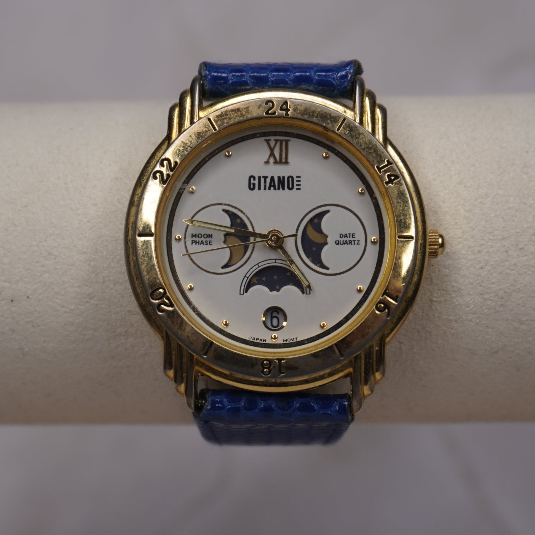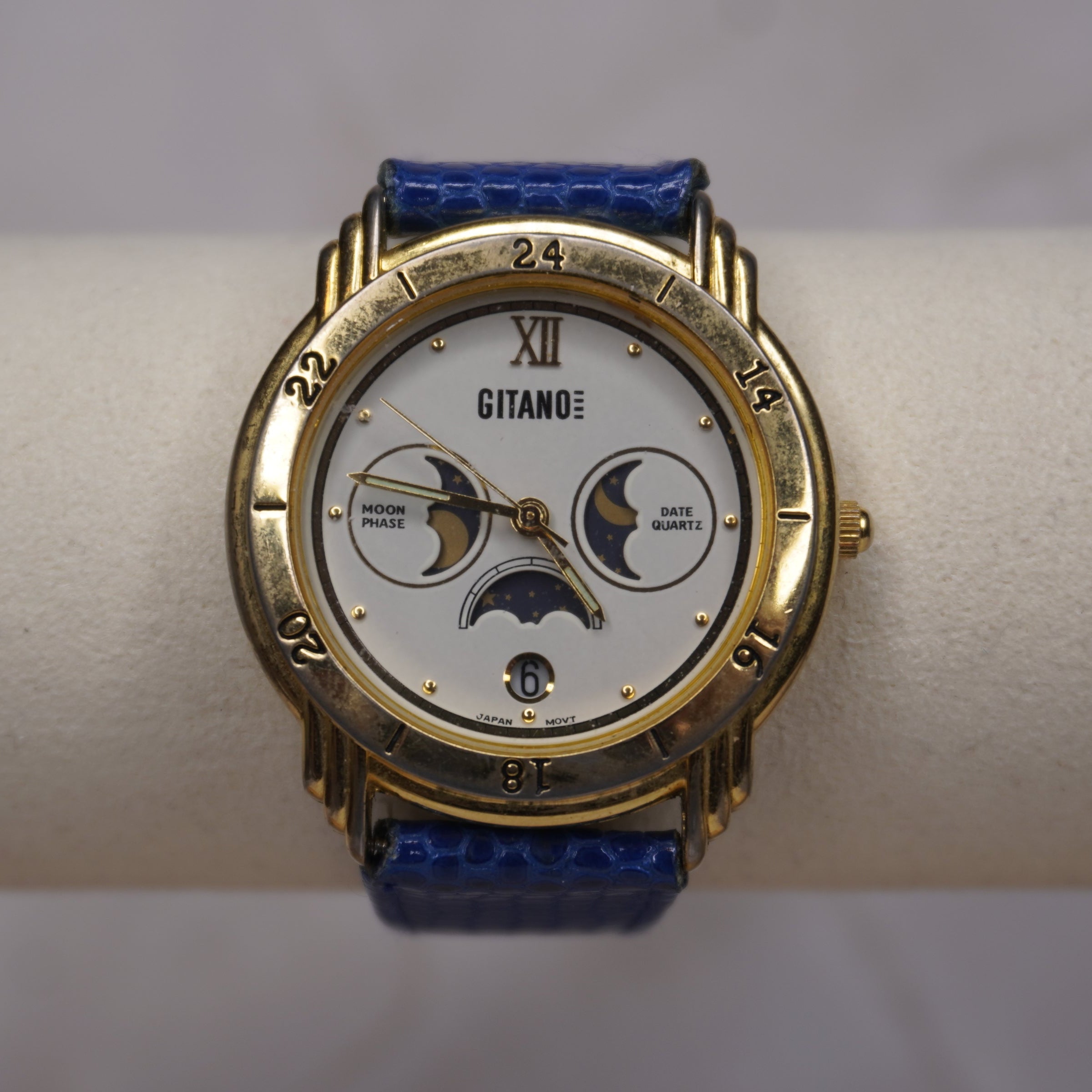 1990's Gitano Quartz Sun Moon Watch Genuine Leather Watch • Wrist Watch Collector• Feminine Detailed Timepiece• Hidden Treasure• Antique Watch