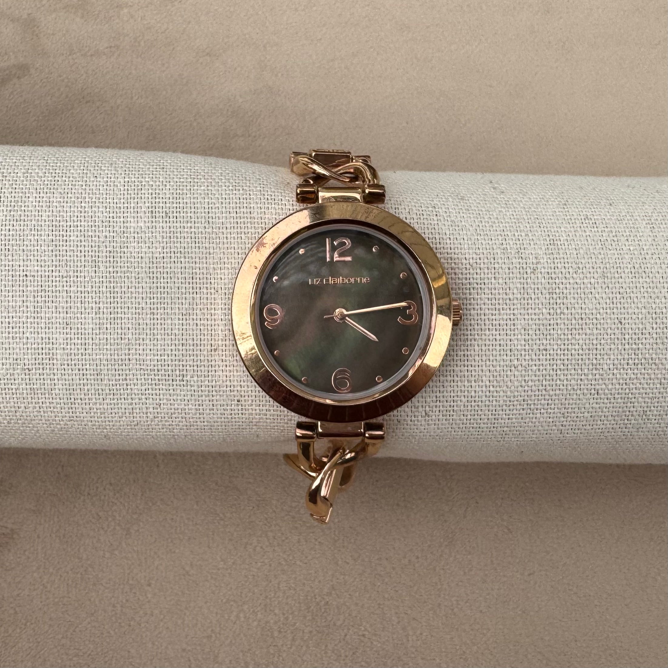 #lizclaiborne #rosegoldwatch #petitewatch #vintagewatch #gracedreamsvintage #motherofpearl #braceletwatch #womenstimepiece #vintagefashion #giftforher #daintywatch