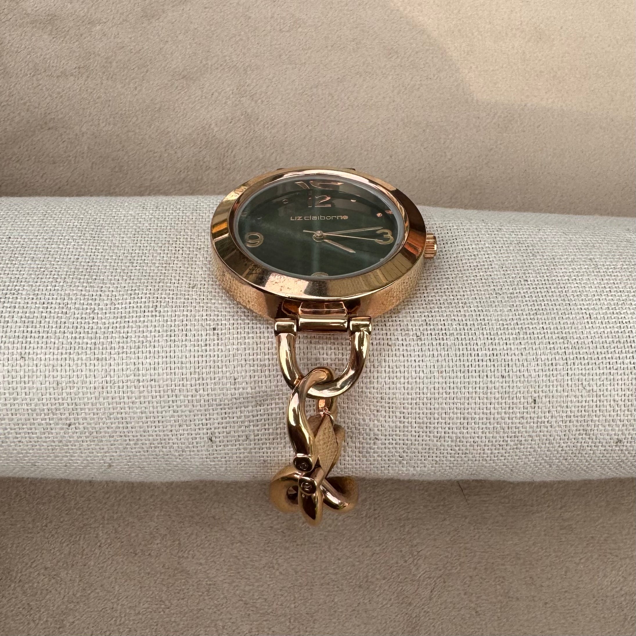 Liz Claiborne Gold Chain Link Watch | Black Mother-of-Pearl Dial | Vintage-Inspired Bracelet Watch | Grace Dreams Vintage