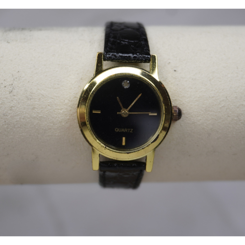 Pristine Gold and Black Snake Skin Leather Diamond Watch• Wrist Watch Collector• Feminine Detailed Timepiece• Hidden Treasure• Antique Watch