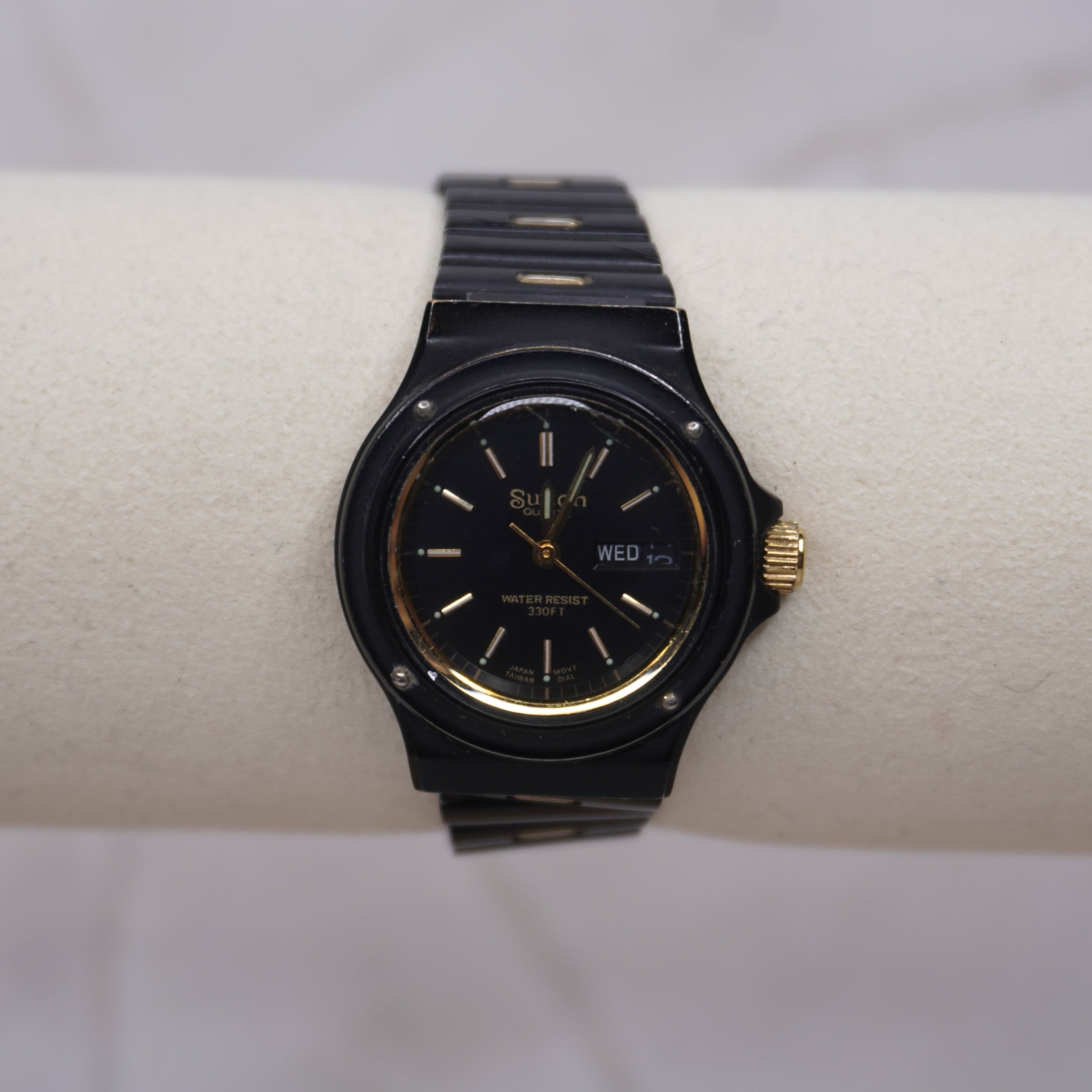 Sleek Vintage Sutton Black and Gold• Wrist Watch Collector• Feminine Detailed Timepiece• Hidden Treasure• Antique Watch