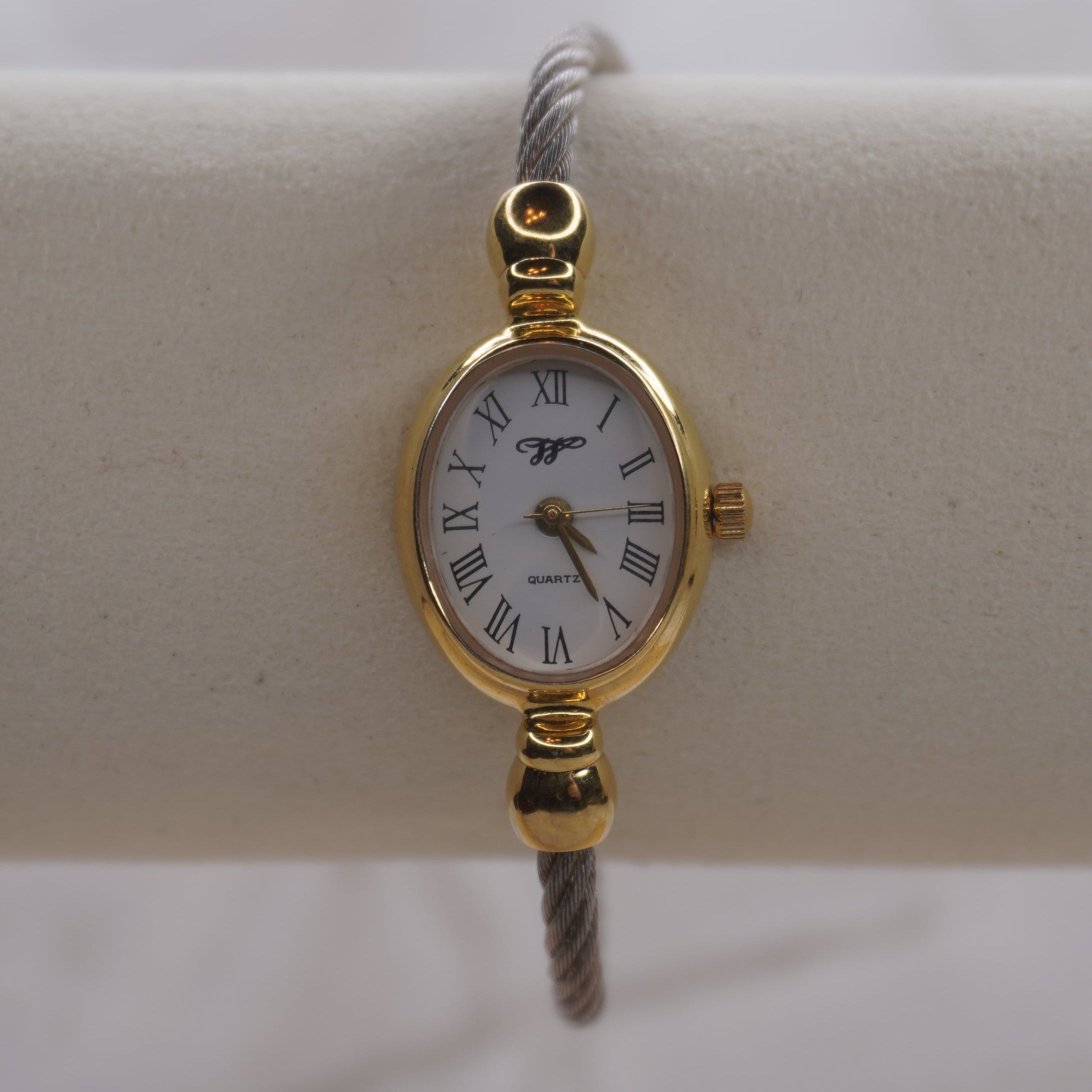 Dainty Two Tone Wire Classy Oval Ladies Wrist Watch• Wrist Watch Collector• Feminine Detailed Timepiece• Hidden Treasure• Antique Watch