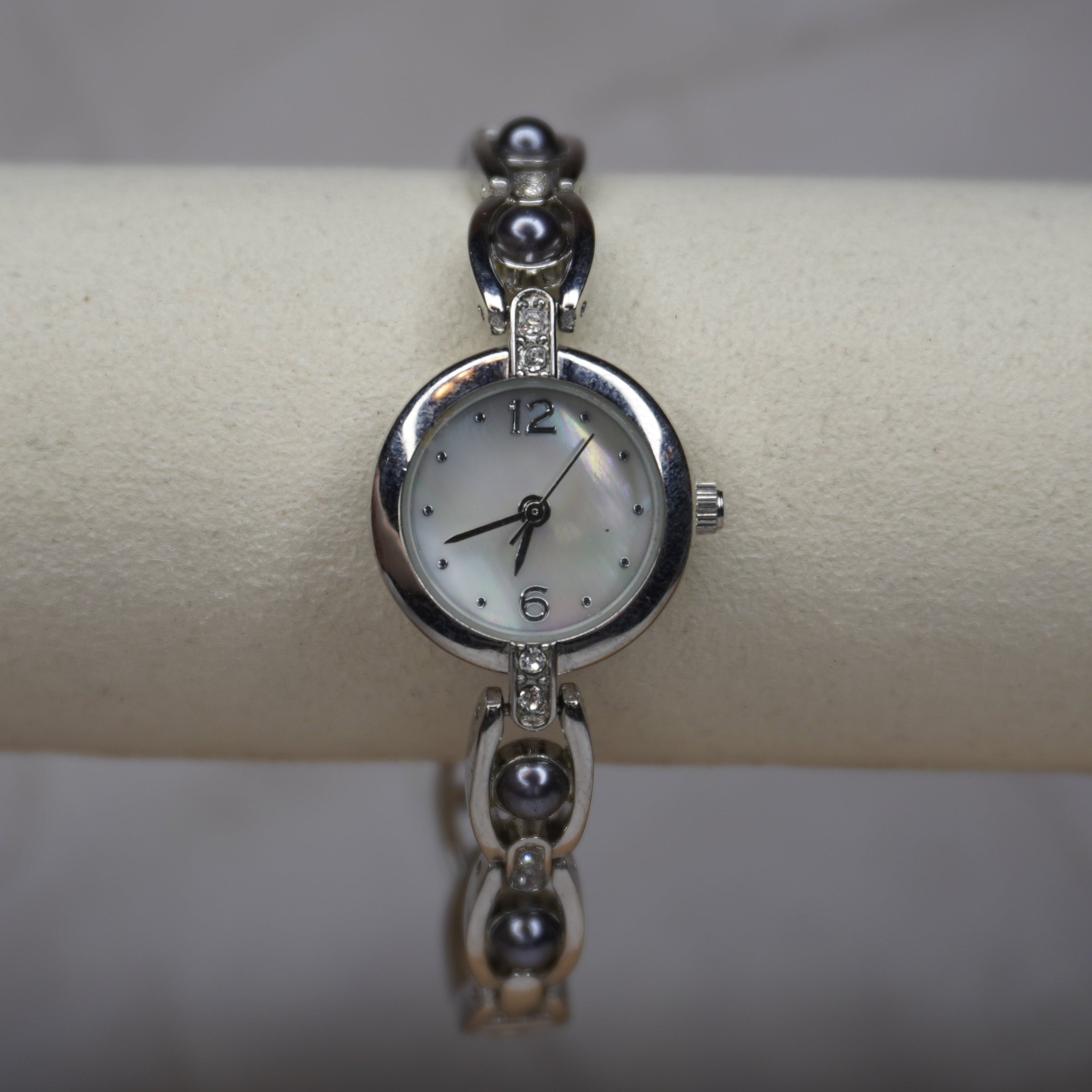 Natural Black Pearl and Diamond Bracelet Watch • Wrist Watch Collector• Feminine Detailed Timepiece• Hidden Treasure• Antique Watch
