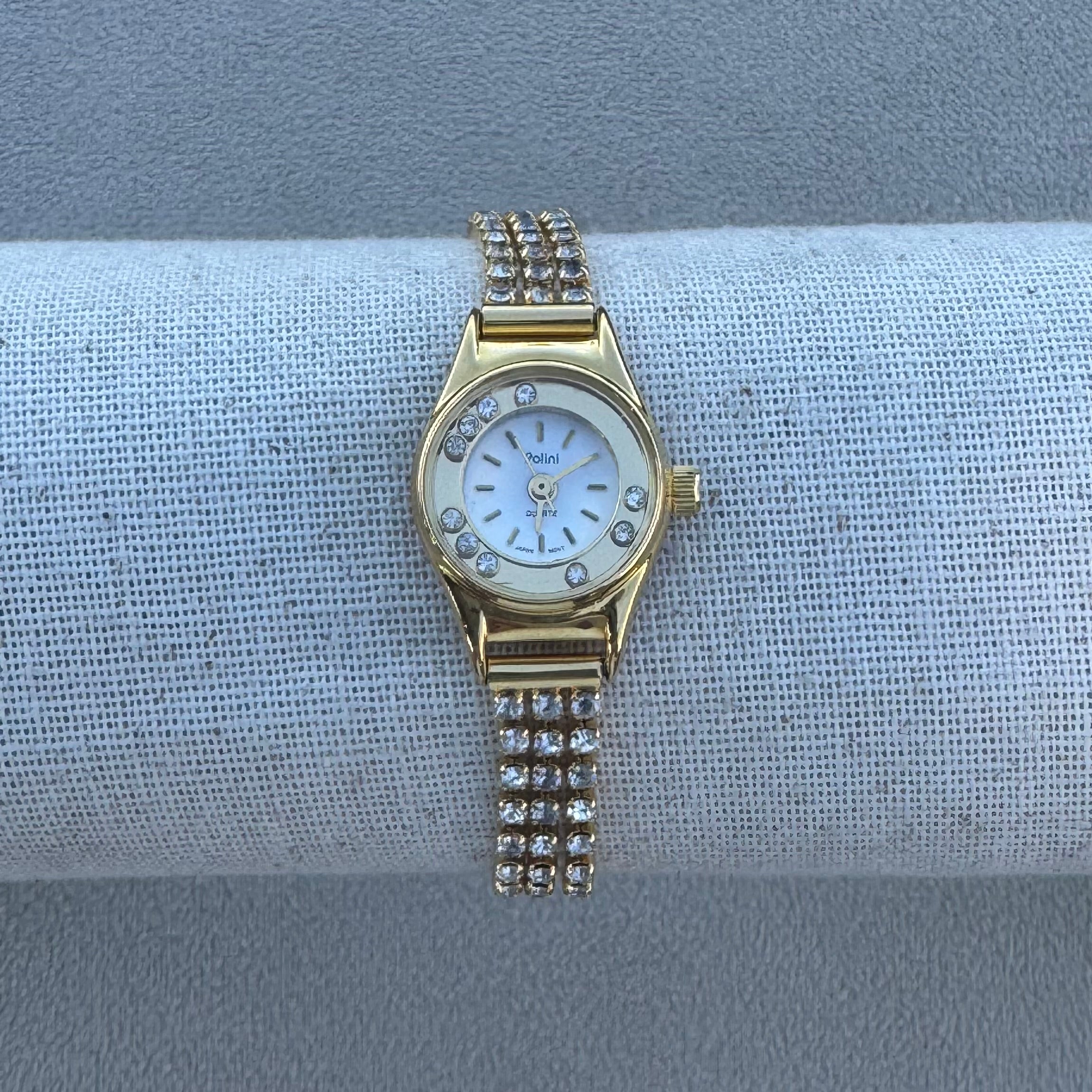 Dainty Diamond Style Pollini Gold Bracelet Watch• Wrist Watch Collector• Feminine Detailed Timepiece• Hidden Treasure• Antique Watch