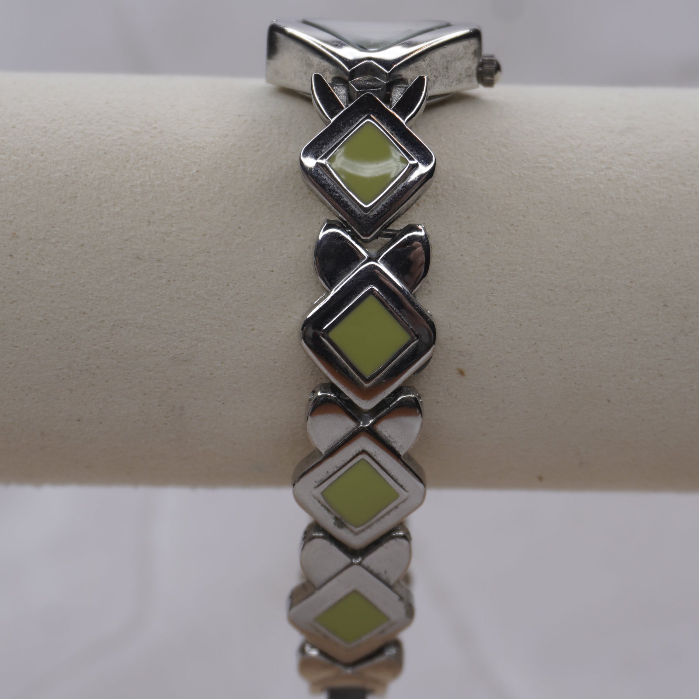 vintage bracelet watch, geometric watch, diamond shape watch, enamel link watch, Isabella watch, Classicque quartz, women’s fashion watch, 2000s watch style, silver tone bracelet watch, collectible women’s watch, unique gift for her, retro fashion jewelry