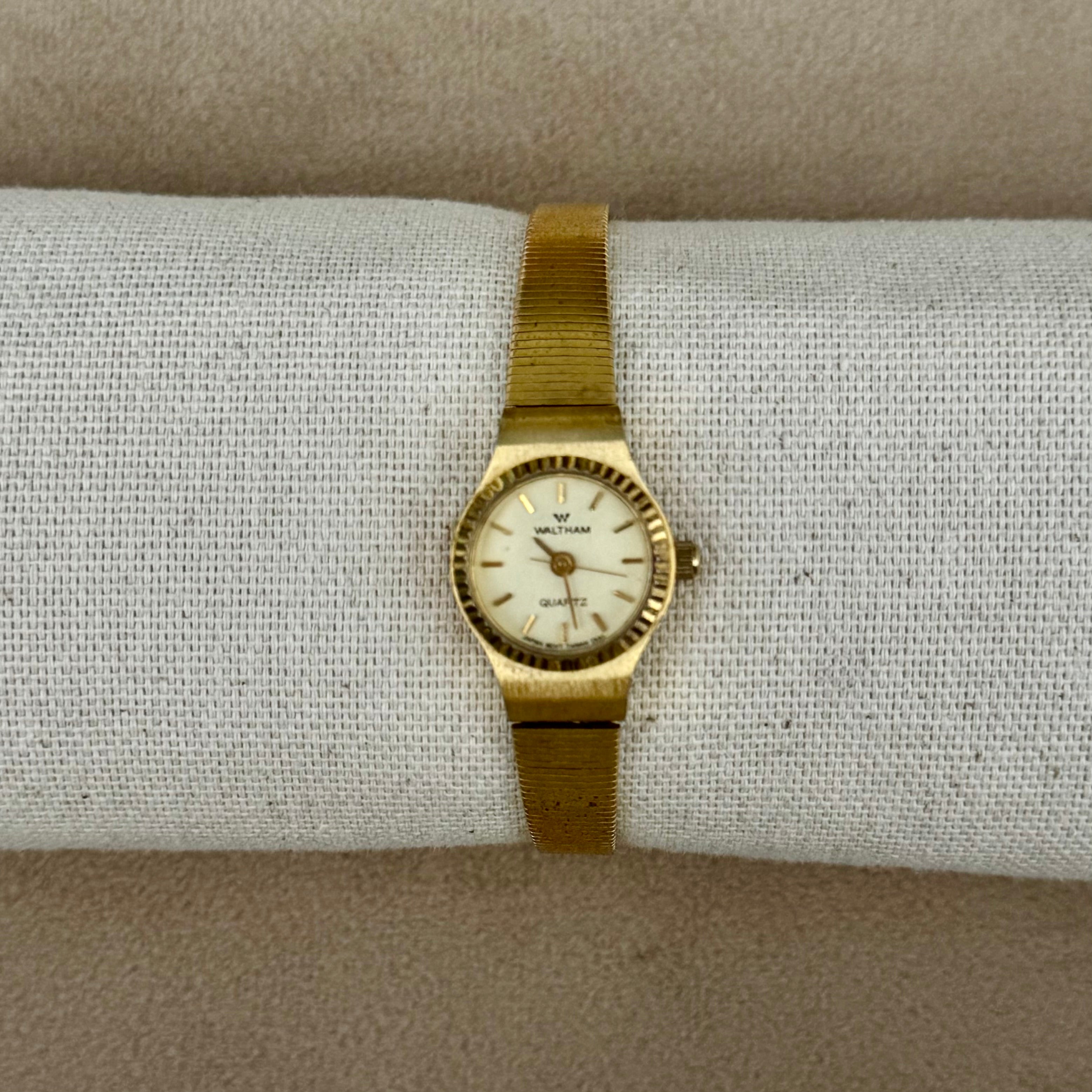 Vintage Waltham Gold Quartz Watch | Classic Mesh Bracelet | Minimalist 1980s Women’s Timepiece | Grace Dreams Vintage