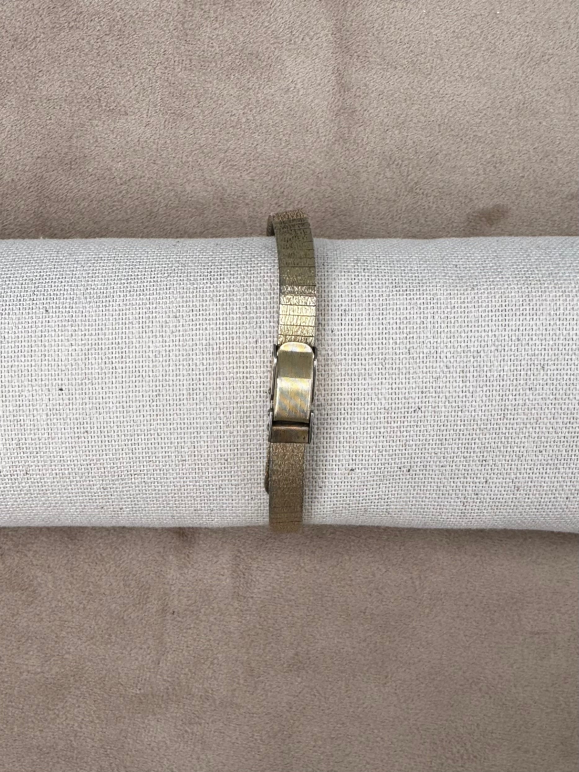 A classic piece that transitions seamlessly from daywear to evening elegance. The brushed gold finish and minimalist dial make it a standout vintage treasure.