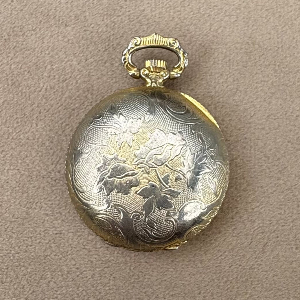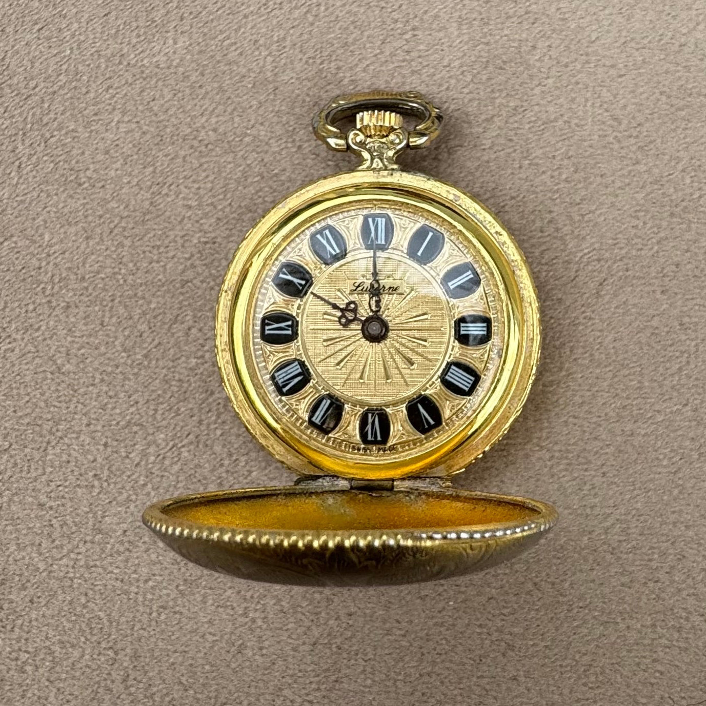 This stunning Lucerne pocket watch captures timeless elegance with intricate floral engravings and a radiant gold-tone finish. The ornate front cover opens to reveal a beautifully detailed dial with Roman numerals and vintage-style hands — a true collector’s piece that blends craftsmanship and charm.